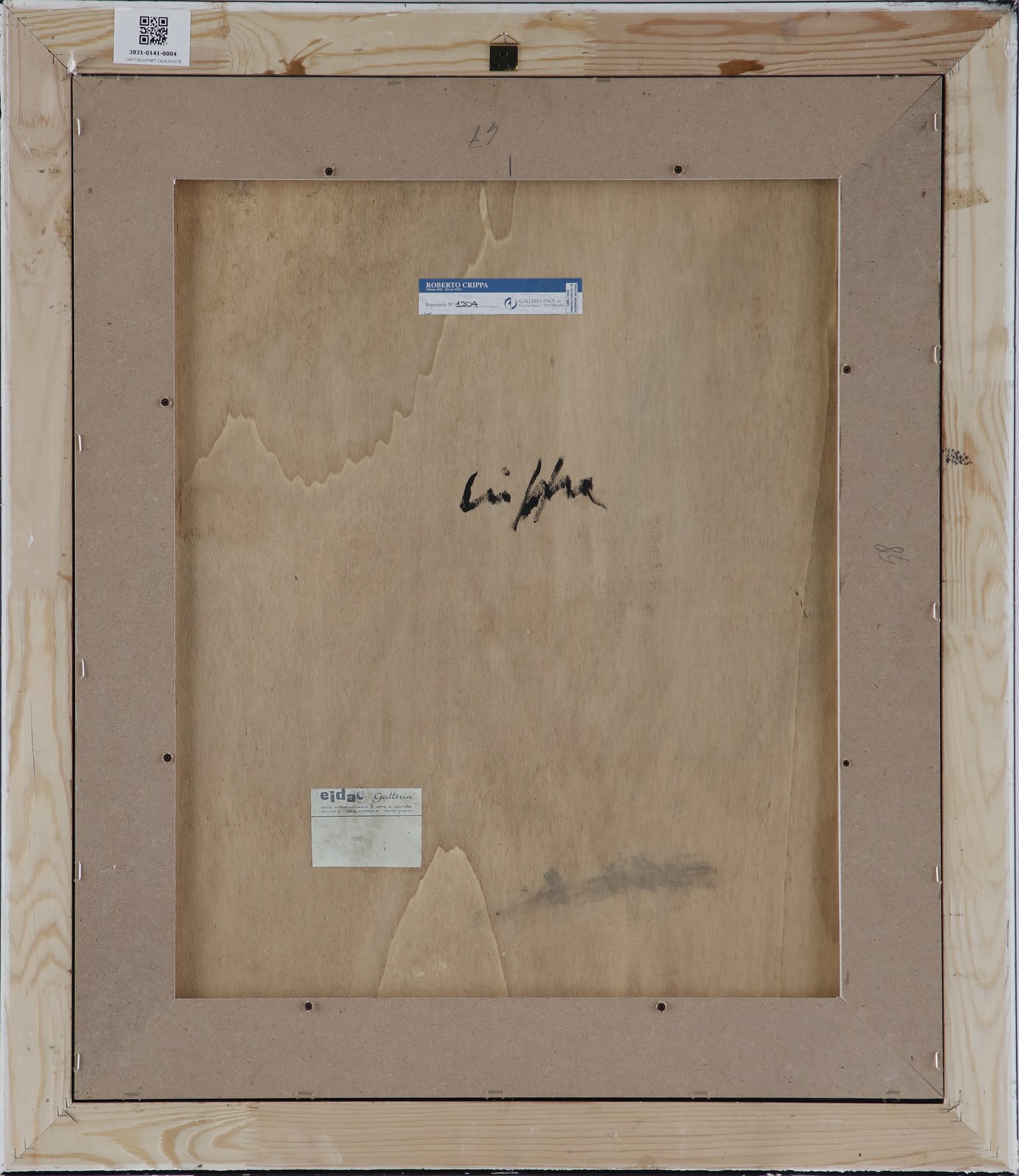 CRIPPA ROBERTO GAETANO (1921 - 1972) Senza titolo. Tecnica mista e collage su tavola. Cm 50,00 x 61,00. Firma al retro. Opera archiviata presso la Galleria Pace, Milano, come da documentazione fotografica allegata all'opera riportante il relativo numero d'inventario. Anni'70. Cornice presente