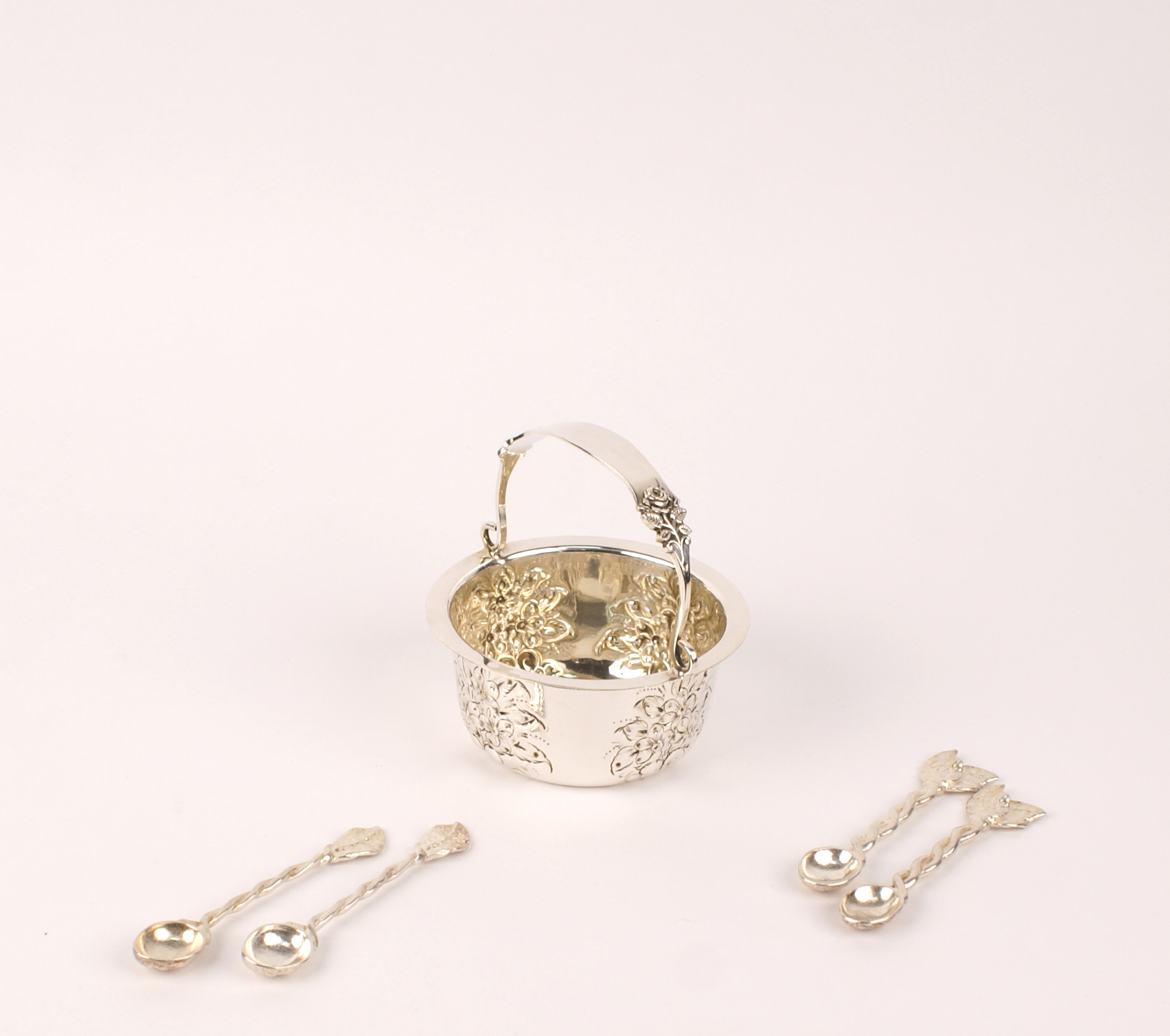 LOTTO IN ARGENTO manifatture diverse composto da un piccolo cestino e dodici...