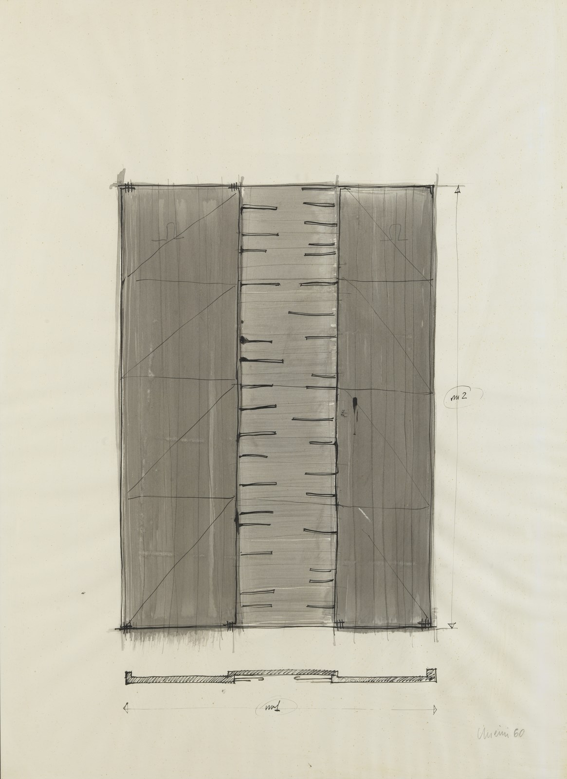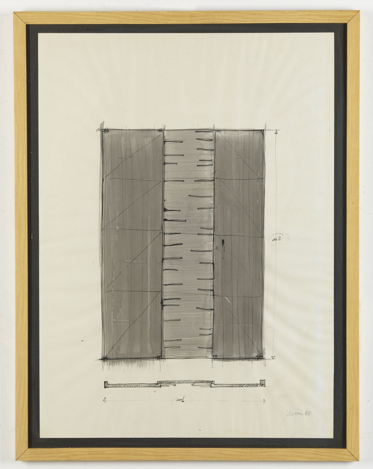 UNCINI GIUSEPPE (1929 - 2008) Senza titolo. 1960. Tecnica mista su carta. Cm 54,00 x 73,00. Firma e anno in basso a destra. Opera archiviata presso l'Archivio Uncini, Trevi, come da documentazione fotografica allegata all'opera riportante il relativo numero d'inventario. Cornice presente