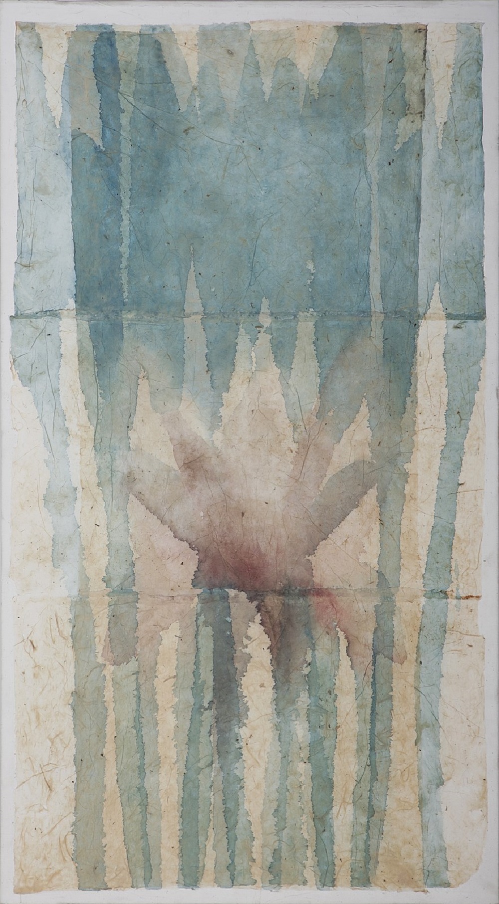 BENATI DAVIDE (n. 1949) Fiume. 1983. Tecnica mista su carta su tela. Cm 90,00 x 151,00. Al retro titolo, firma e anno. Autentica dell'artista su fotografia.