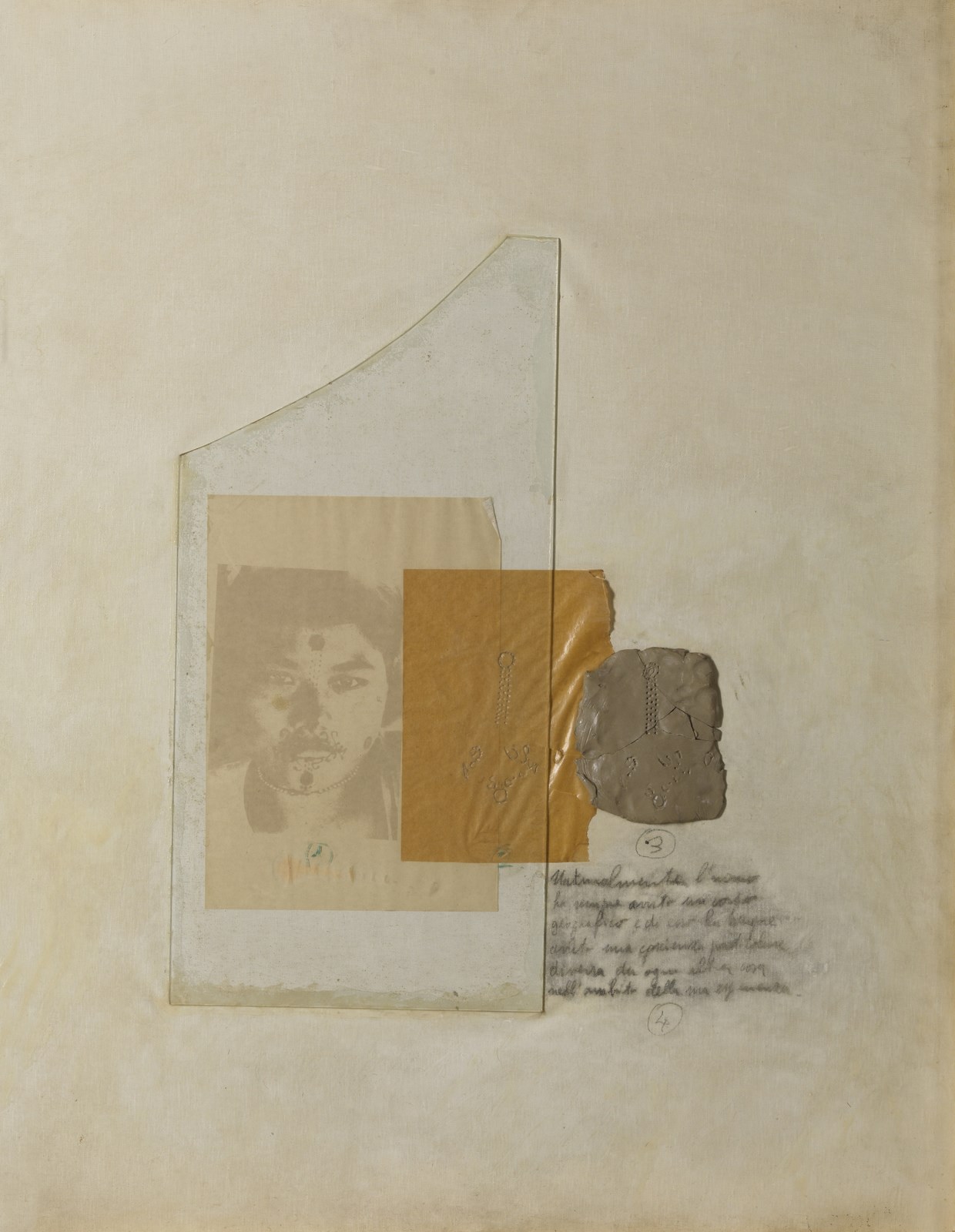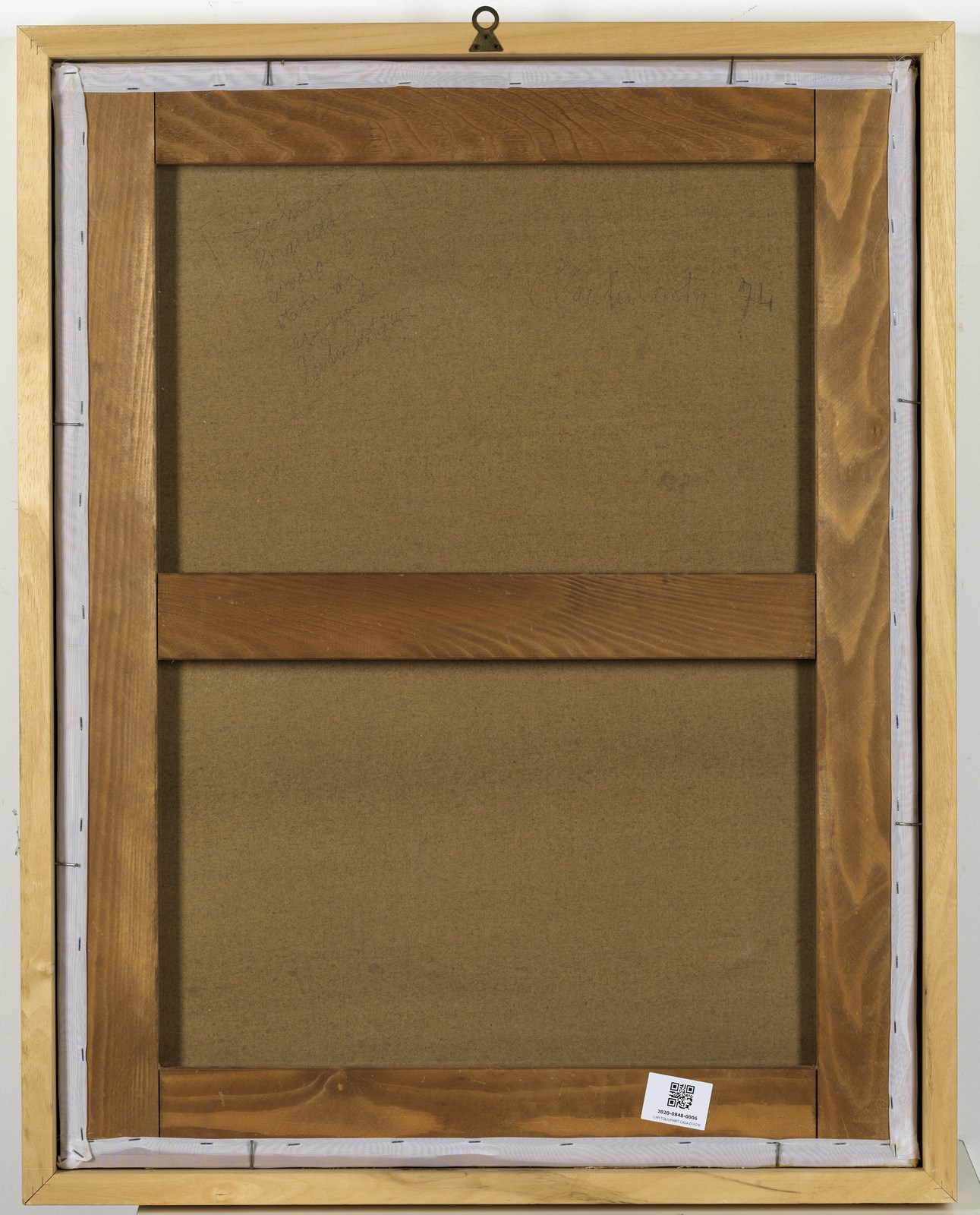 COSTA CLAUDIO (1942 - 1995) Senza titolo. 1983. Tecnica mista su tela. Cm 70,00 x 90,00. Firma apocifa al retro. Opera archiviata presso l'Archivio Claudio Costa, Rapallo, come da documentazione fotografica allegata all'opera riportante il relativo numero d'inventario. Cornice presente