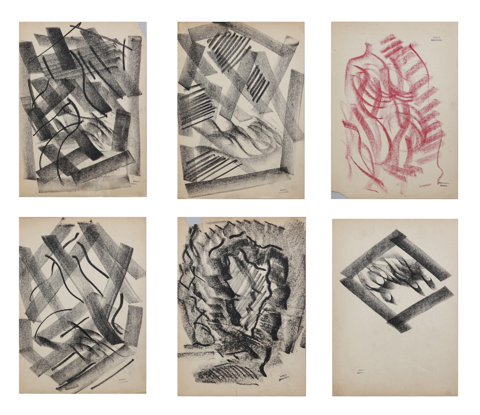CHONCHOL MARCO Lotto composto da n.6 opere. Tecnica mista su carta. Cm 21,00 x 29,20. Timbro dell'artista in basso a destra.
