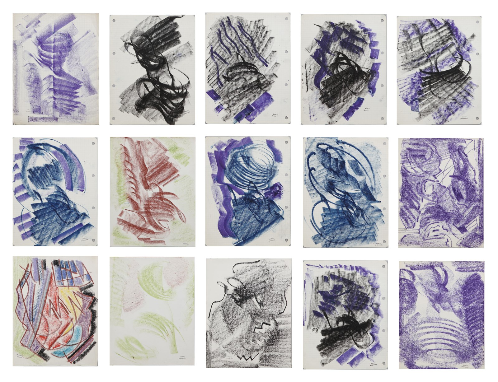 CHONCHOL MARCO Lotto composto da n.15 opere. Tecnica mista su carta. Cm 21,00 x 27,40. Timbro dell'artista in basso a destra.
