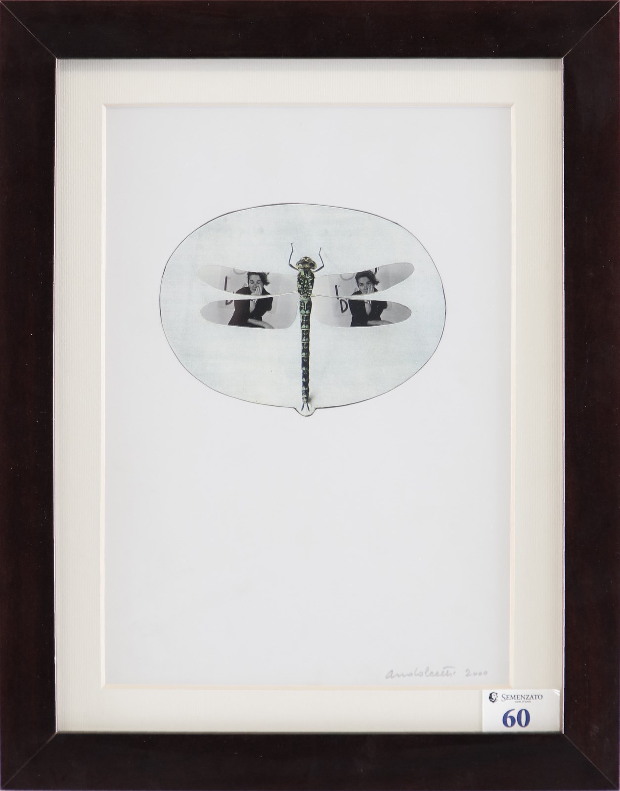 ANDOLCETTI FERNANDO (n. 1930) Senza titolo. 2000. Tecnica mista e collage su carta. Cm 21,00 x 30,00. Firma e anno in basso a destra. Cornice presente