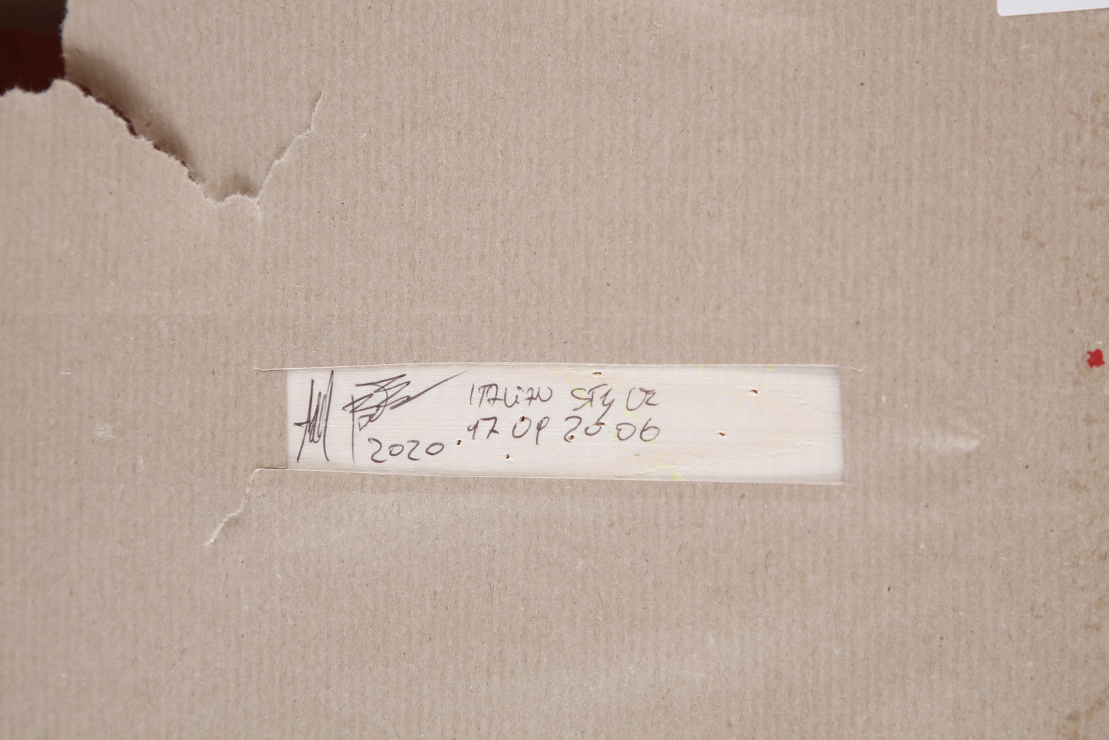 BUTERA ALESSANDRO (n. 1971) Italian style 17092006. 2020. Acrilico su tela estroflessa. Cm 30,00 x 60,00. Al retro titolo, firma e anno. Autentica dell'artista su fotografia.