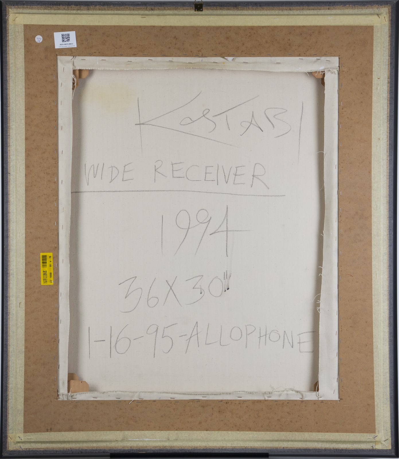 KOSTABI MARK (n. 1960) Wide receiver. 1994. Olio su tela . Cm 76,00 x 91,00. Al retro titolo, firma e anno. Autentica dell'artista su fotografia. Cornice presente