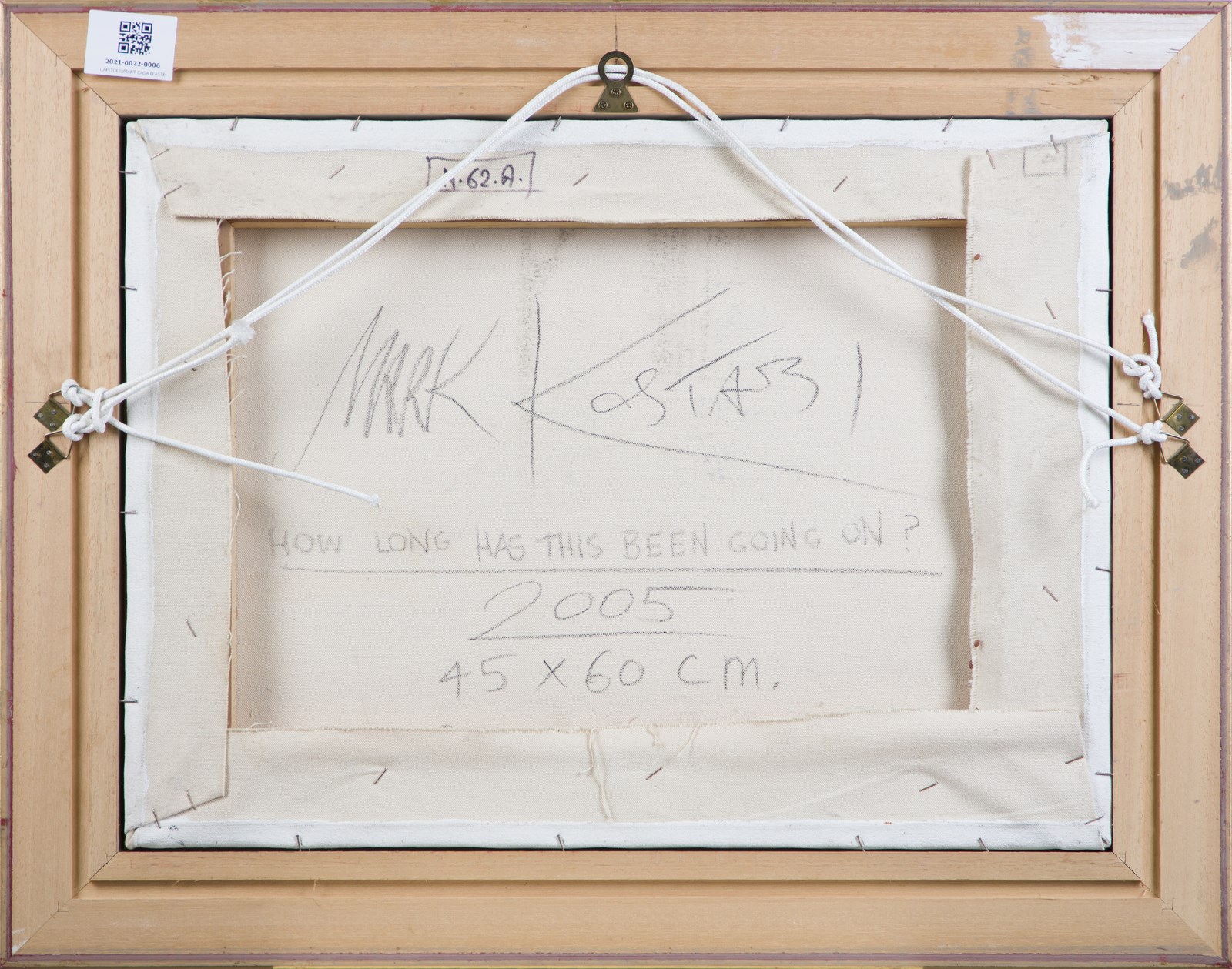 KOSTABI MARK (n. 1960) How long has it been going on.. 2005. Olio su tela . Cm 60,00 x 45,00. Al retro titolo, firma e anno. Autentica dell'artista su fotografia. Cornice presente