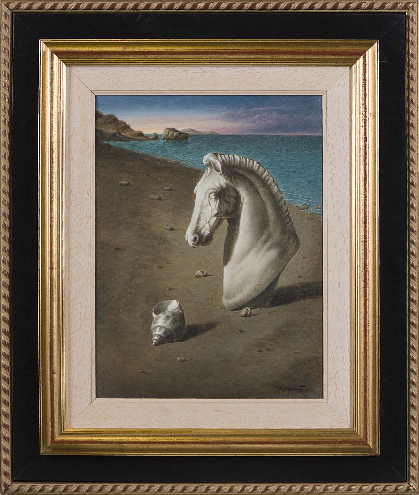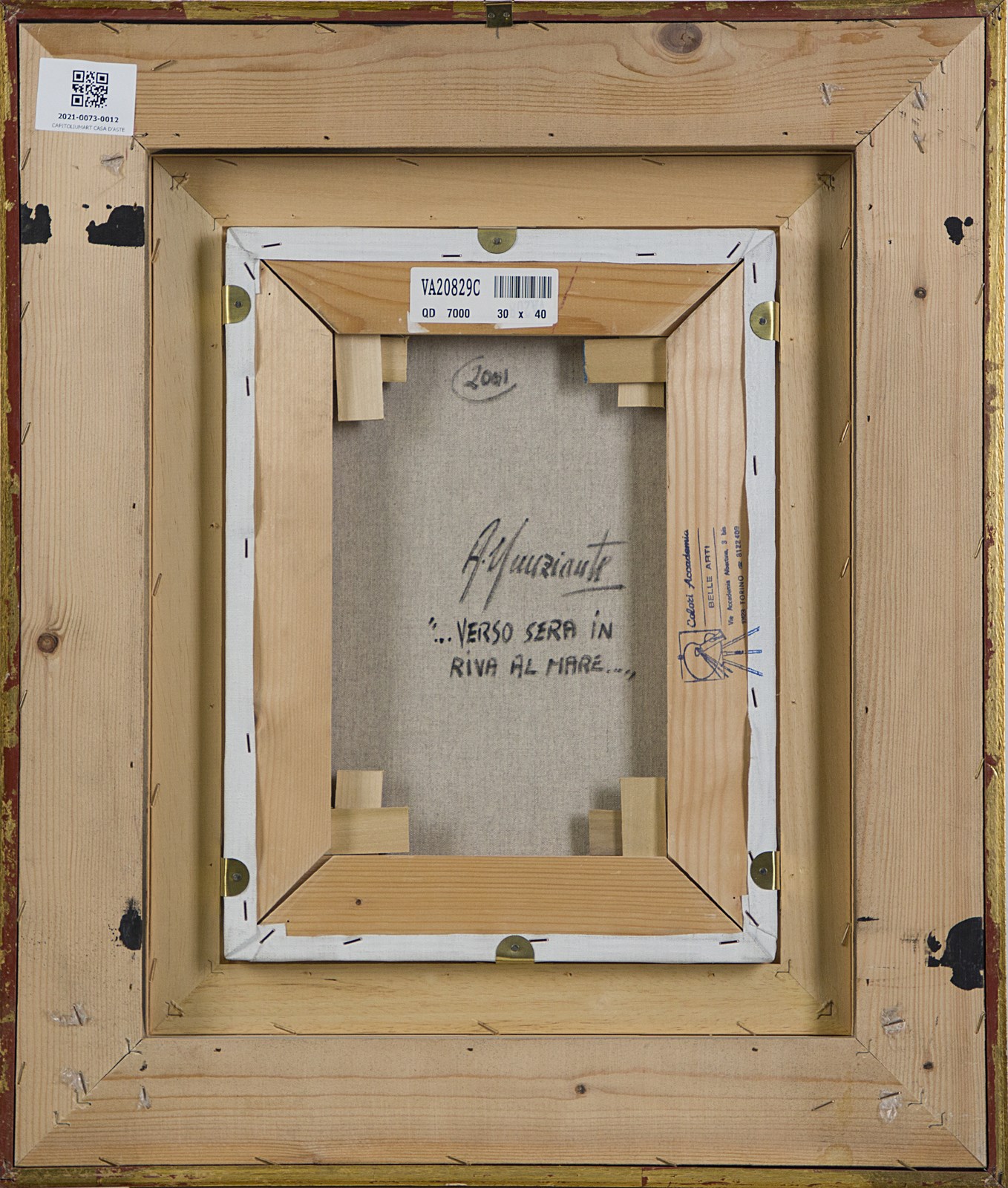 NUNZIANTE ANTONIO (n. 1956) Verso sera in riva al mare. 2000. Olio su tela . Cm 30,00 x 40,00. Firma in basso a destra. Al retro titolo e firma. Autentica dell'artista su fotografia riportante il relativo numero d'inventario. Pubblicazione: Antonio Nunziante a cura di Vittorio Sgarbi e Willy Montini, Giorgio Corbelli Editore, pag.157. Certificato di autenticità Telemarket, Roncadelle. Cornice presente