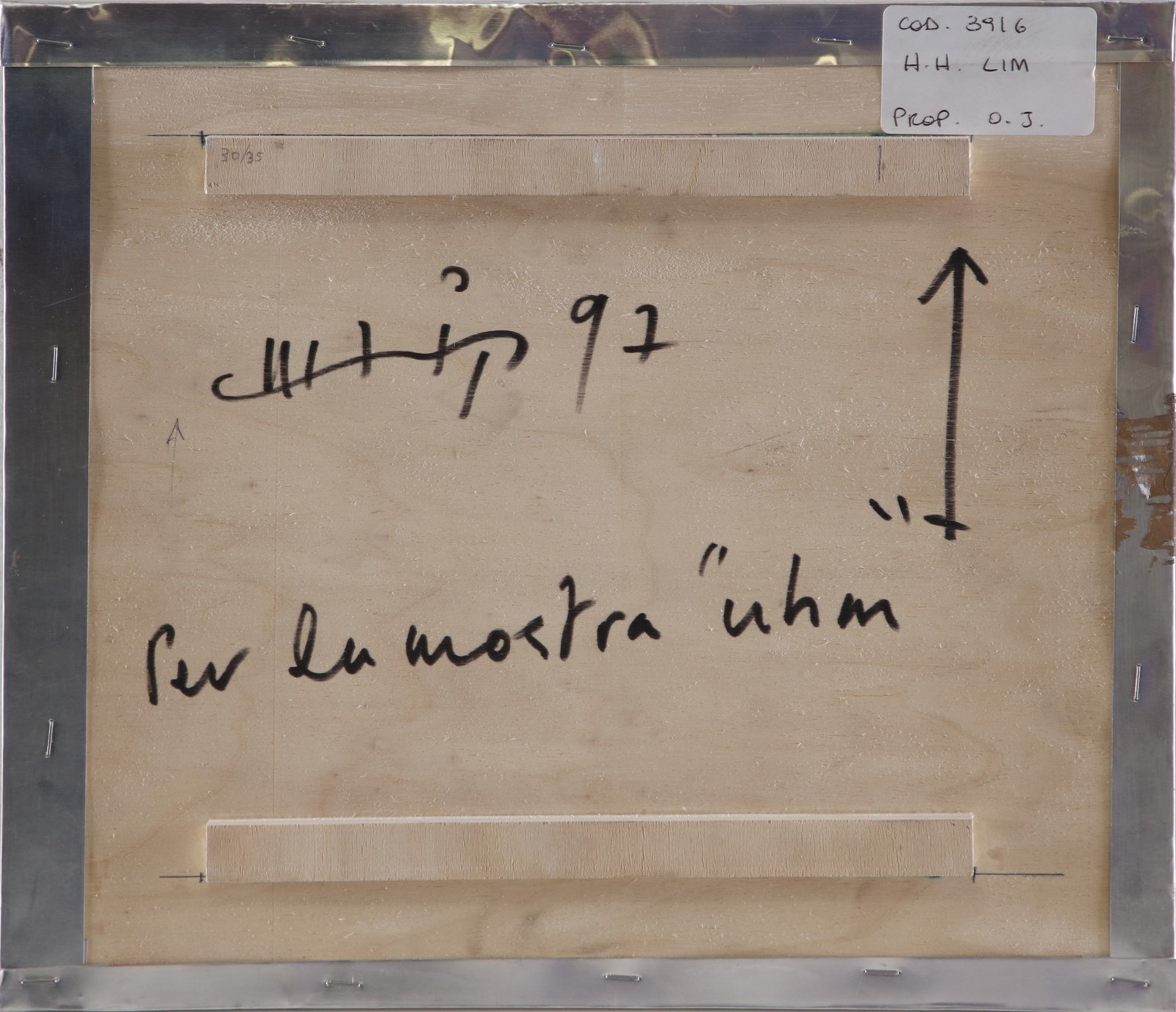 LIM H.H (n. 1954) Senza titolo. 1997. Alluminio su tavola. Cm 35,20 x 30,30. Al retro titolo, firma e anno.