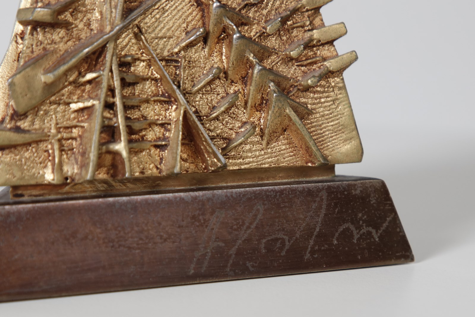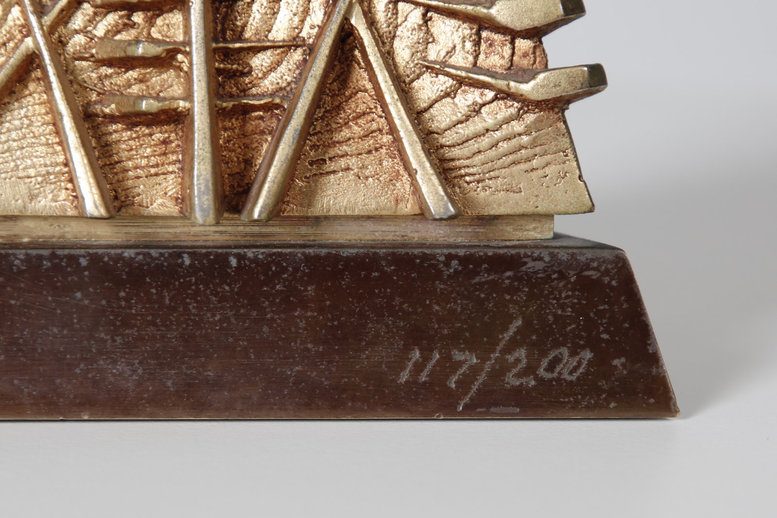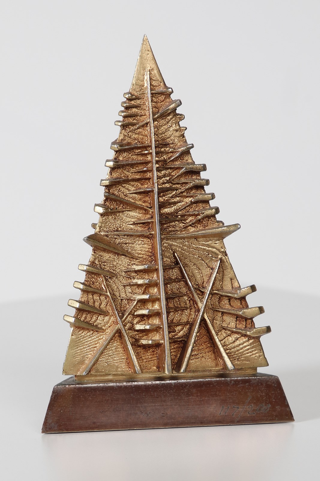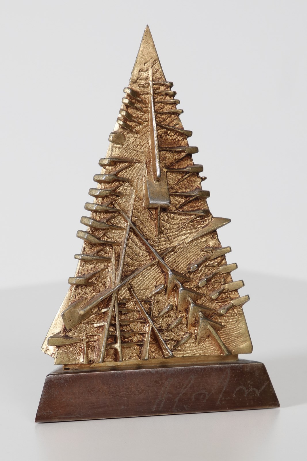 POMODORO ARNALDO (n. 1926) Piramide per Banca Nazionale del Lavoro. 1986. bronzo dorato. Cm 9,00 x 15,00 x 7,50. 117/200. Tiratura e firma incise alla base. Fonderia Artistica F.lli Bonvicini, Caselle di Sommacampagna. Edizione totale: 200 esemplari numeri arabi + C numeri romani + prove d'artista. Opera registrata presso la Fondazione Arnaldo Pomodoro, Milano, Sez. Multipli. Sitografia: https://www.arnaldopomodoro.it/catalogue_raisonne/artworks/detail/2057/mag01m0553-piramide-per-banca-nazionale-del-lavoro . Bibliografia: Sotheby's, catalogo d'asta, Milano, 23 novembre 1999, pp. 7, 22, ill. pp. 52, 103, Arte moderna e contemporanea. Sotheby's, catalogo d'asta, Milano, 26 maggio 1998, ill. pp. 16, 30, 79, Arte moderna e contemporanea.