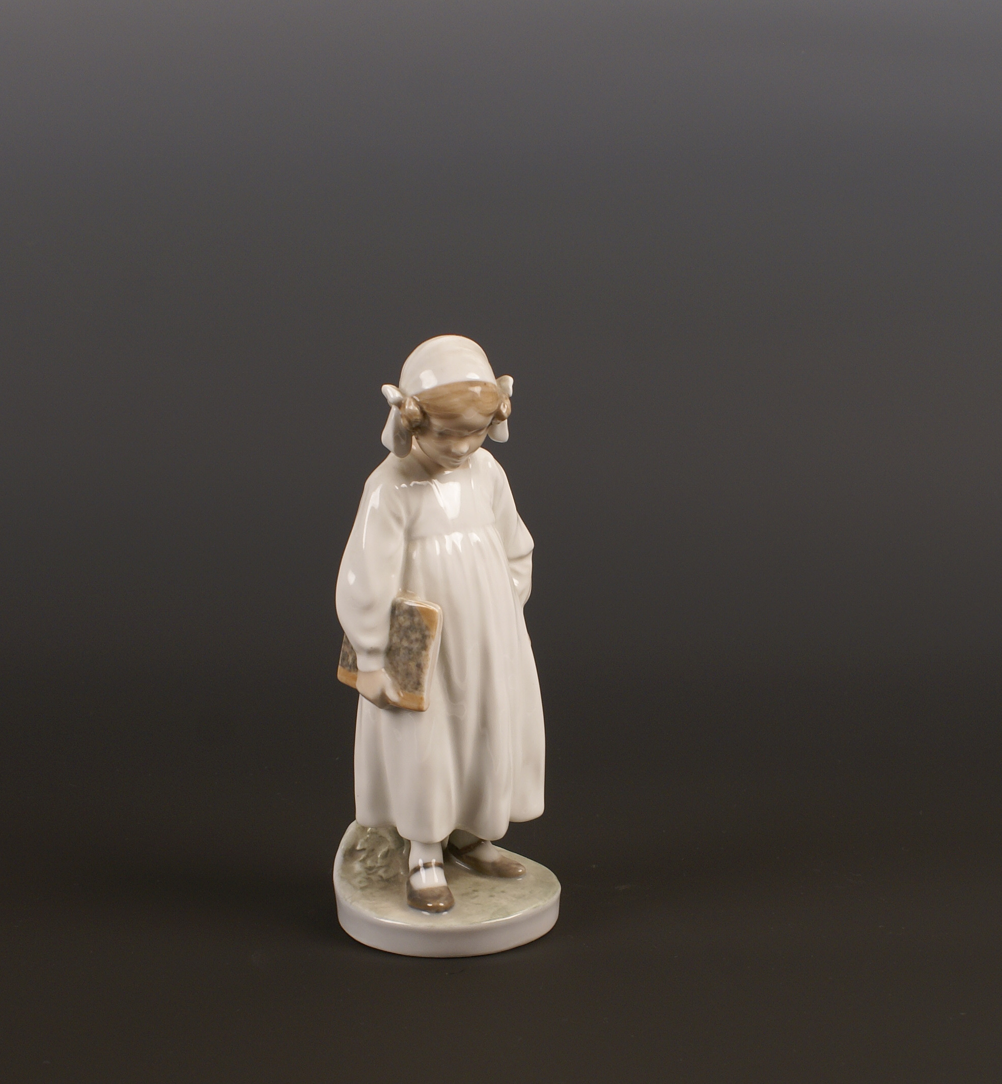 FIGURA DI SCOLARETTA IN PORCELLANA manifattura Royal Copenaghen dipinta in policromia h. 16,5 cm.
