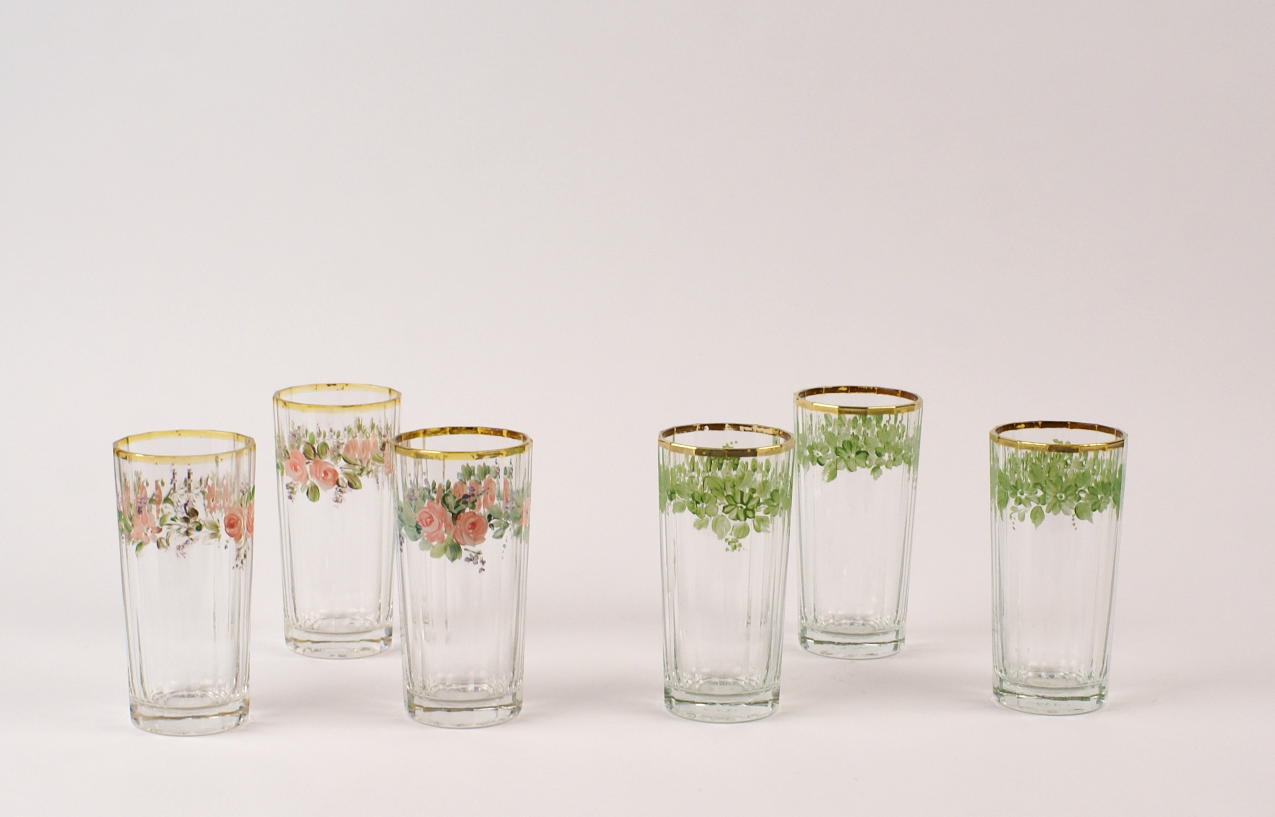 DODICI BICCHIERI DA BIBITA in vetro dipinti a motivo floreale