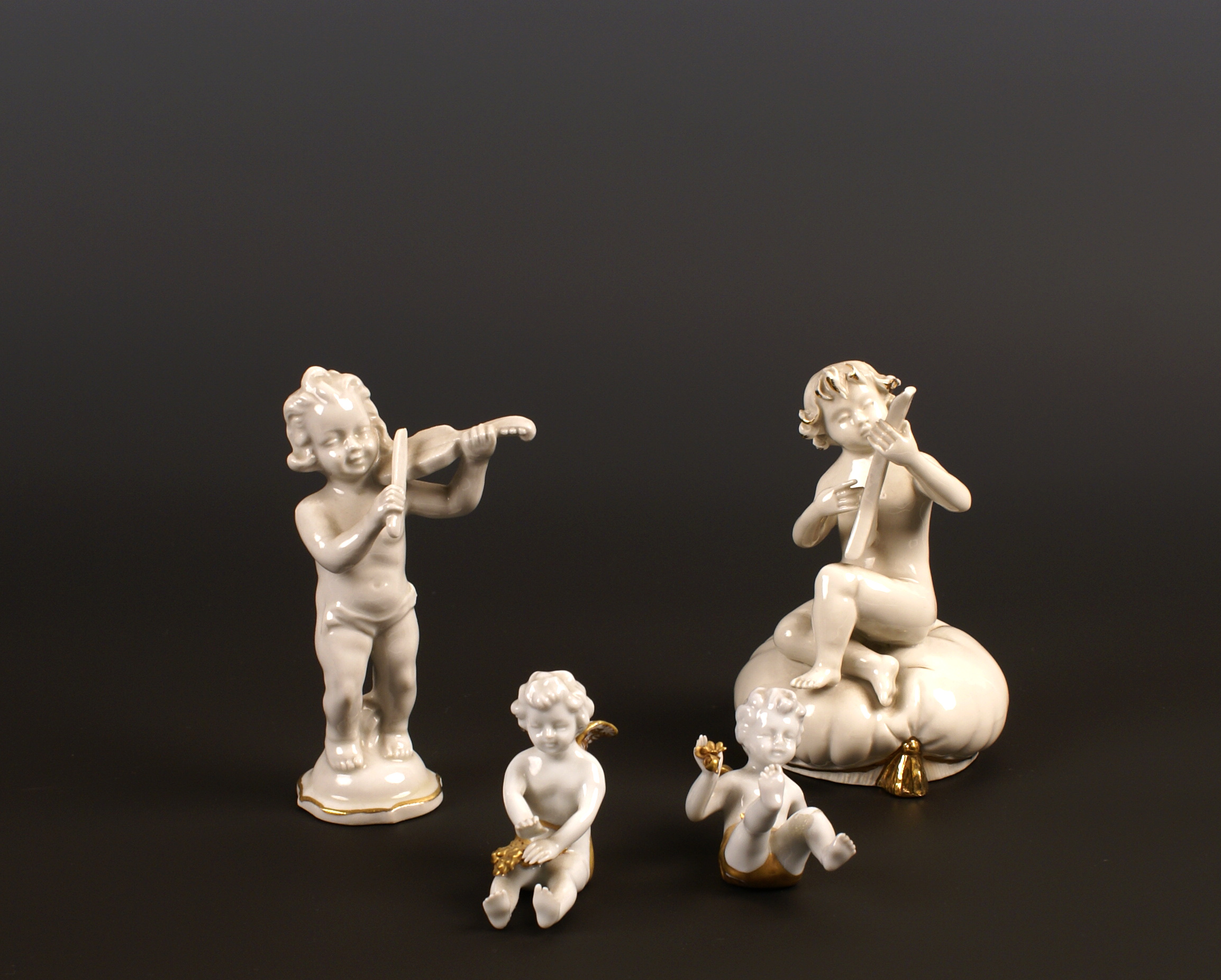 LOTTO DI QUATTRO OGGETTI IN PORCELLANA manifatture diverse raffiguranti putti (difetti)