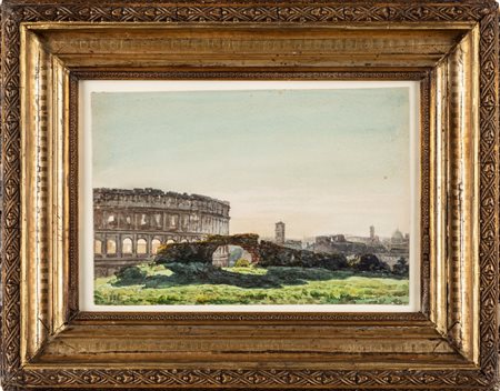 Pietro Sassi (Alessandria 1834-Roma 1905) - "Schizzo, Il Colosseo preso dalla parte Nord da sulle rovine delle Terme di Diocleziano", 1878