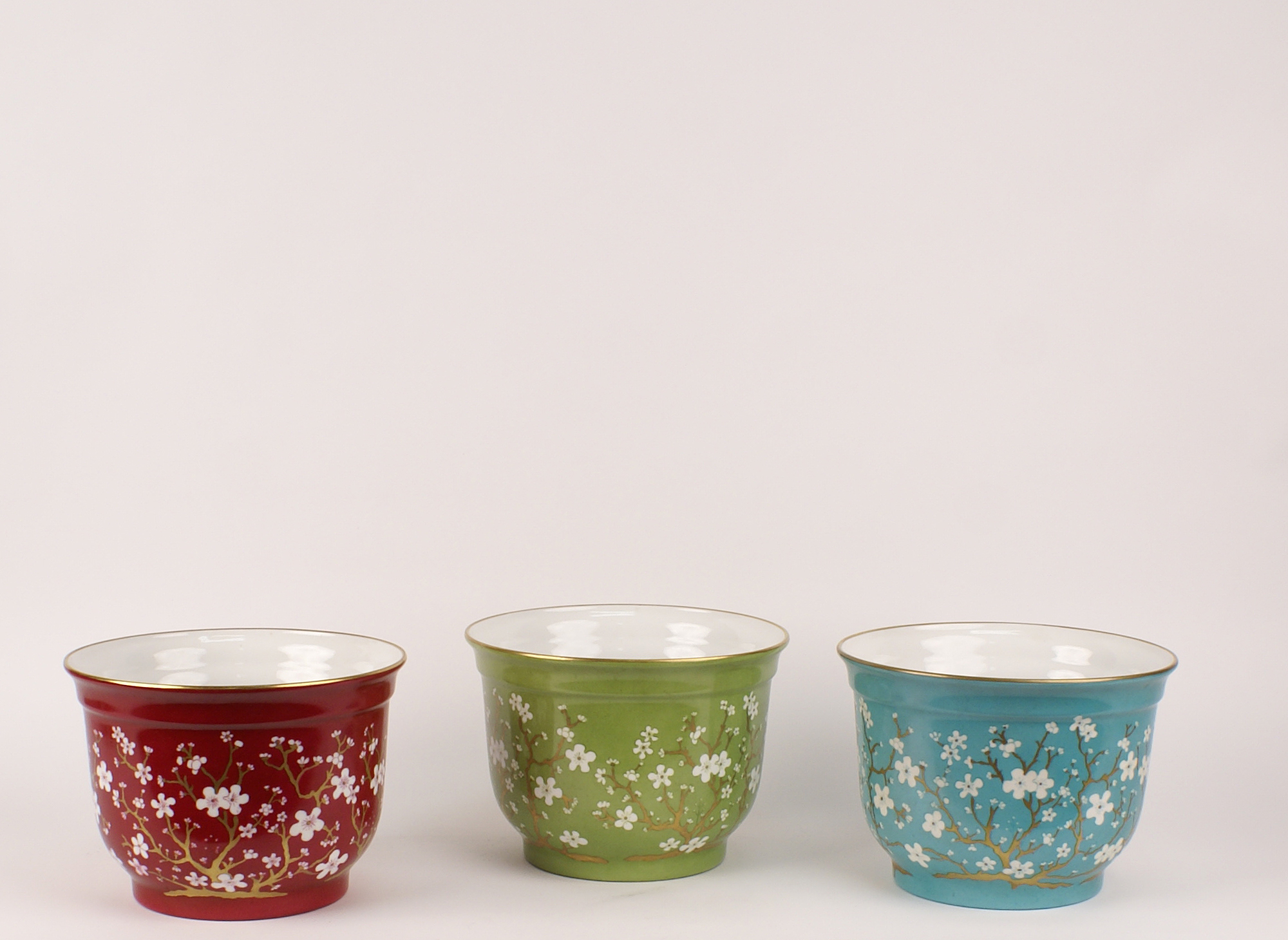 Lot 803 | TRE CACHEPOTS IN PORCELLANA dipinta in policromia e parzialmente dorati 15x20...