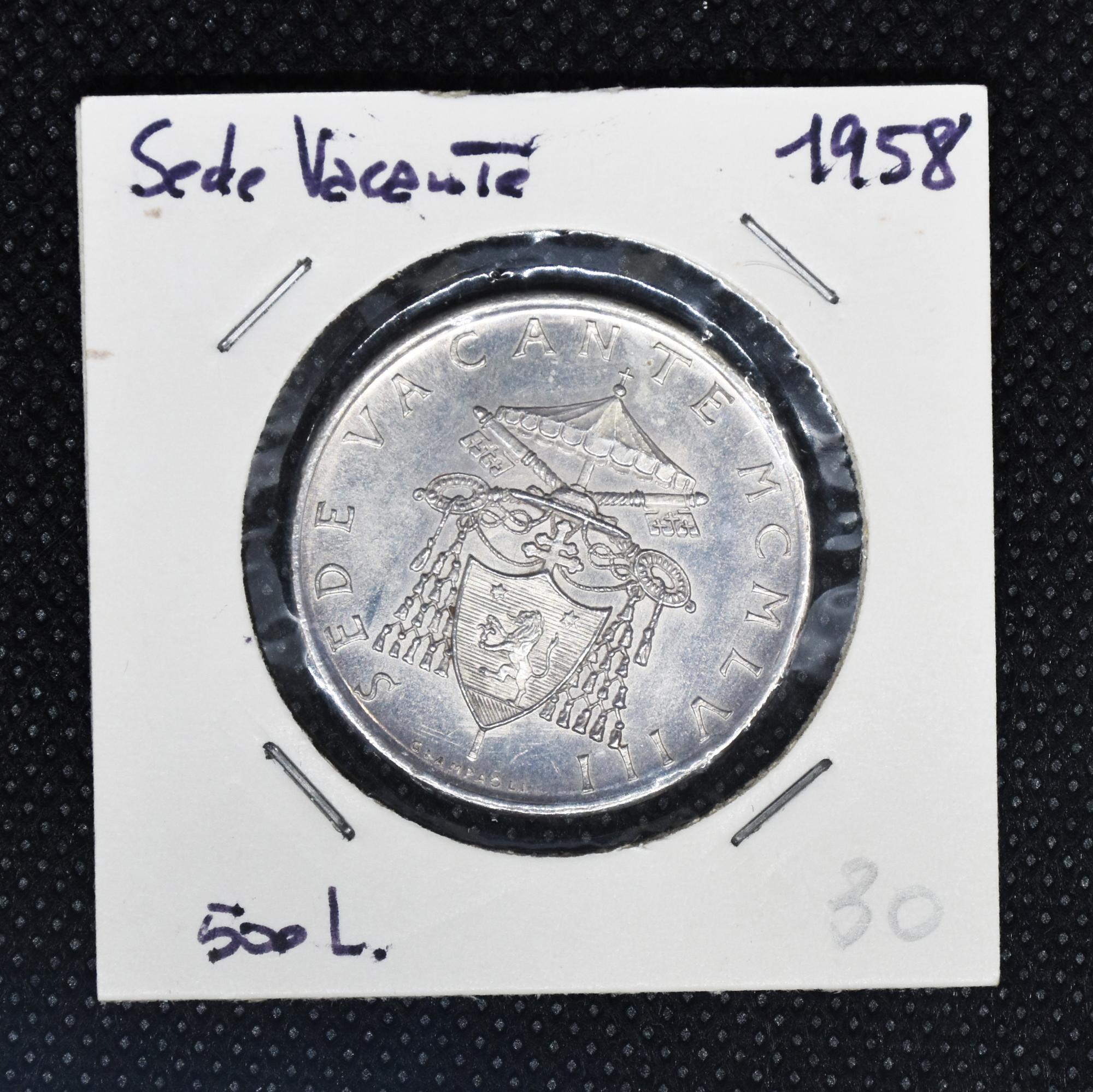 500 LIRE CITTA' DEL VATICANO 1958 in argento, Sede Vacante