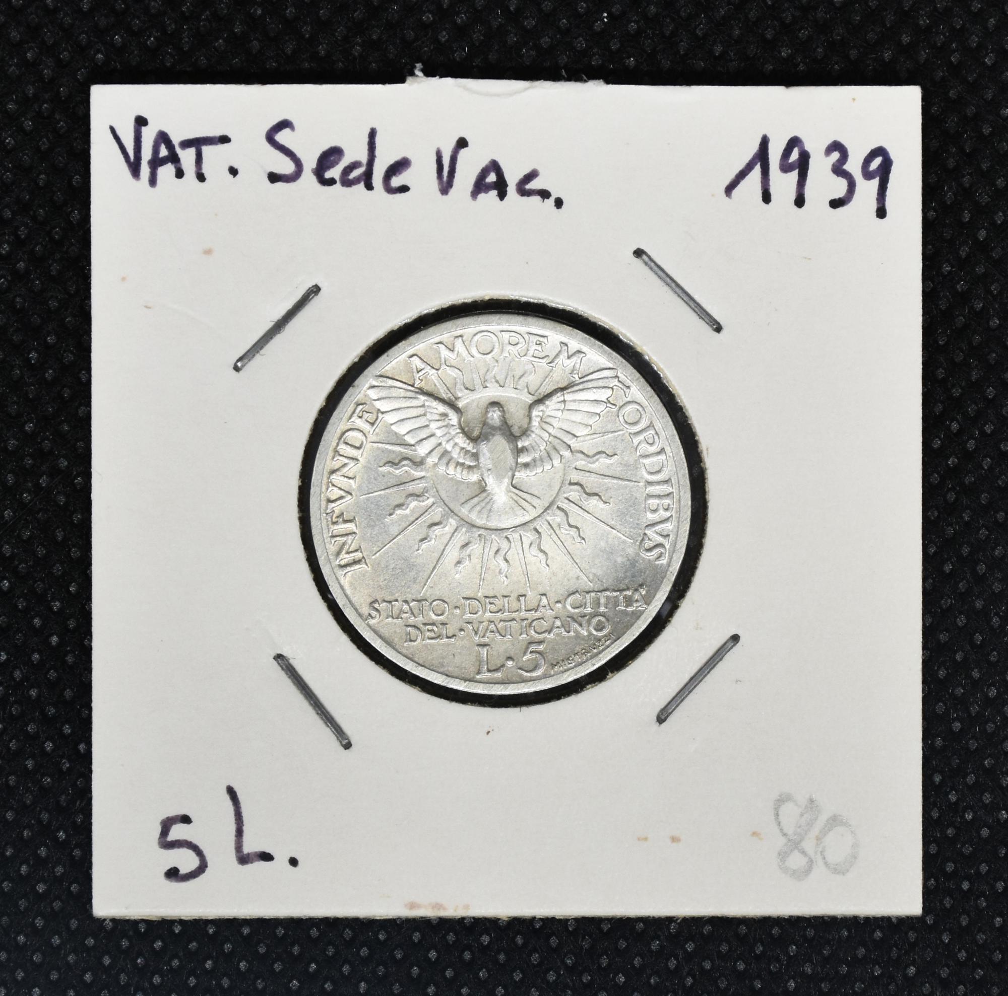 5 LIRE CITTA' DEL VATICANO 1939 Sede Vacante
