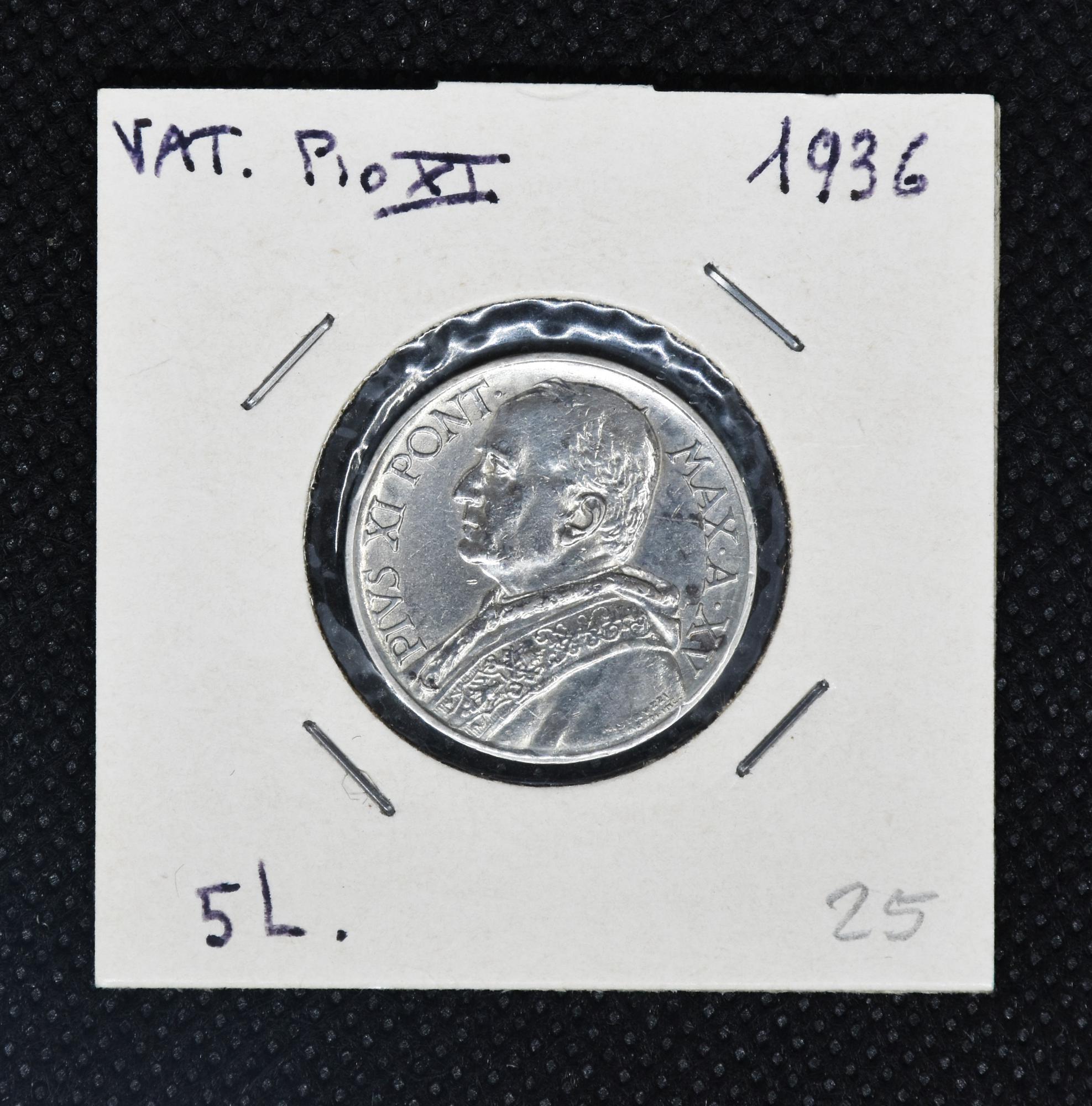 5 LIRE CITTA' DEL VATICANO 1936 Papa Pio XI