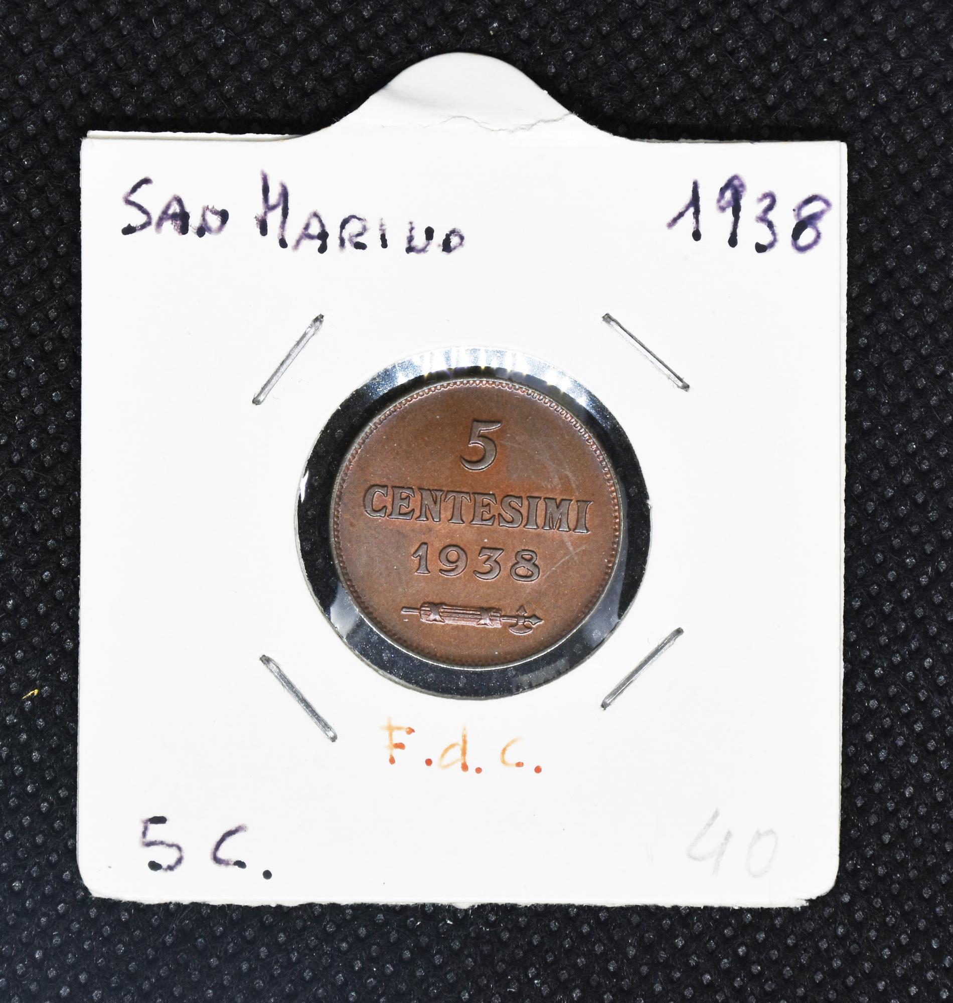 5 CENTESIMI REPUBBLICA DI SAN MARINO 1938 F.D.C.