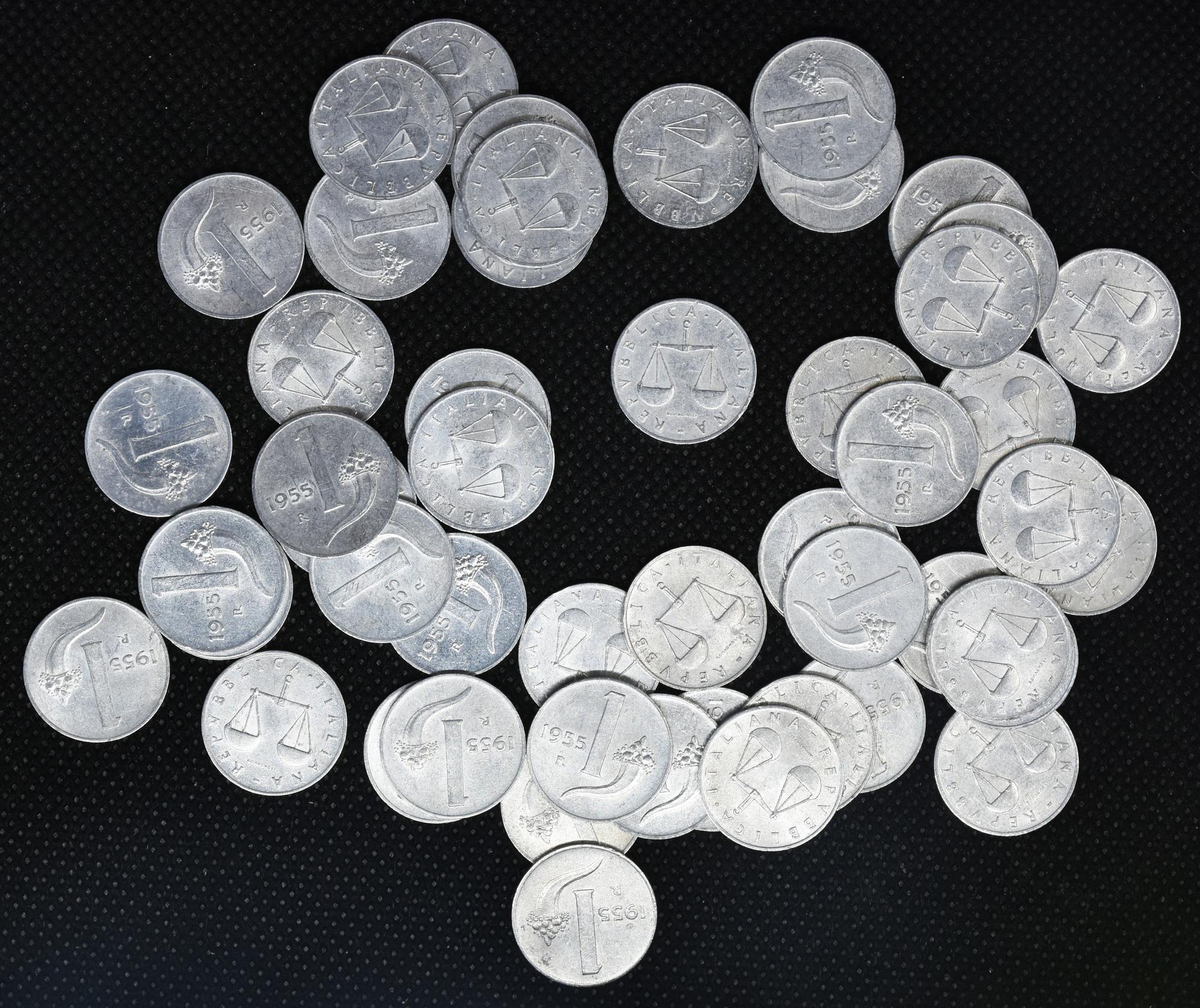 LOTTO DI 50 MONETE REPUBBLICA ITALIANA da 1 lira 1955 F.D.C.