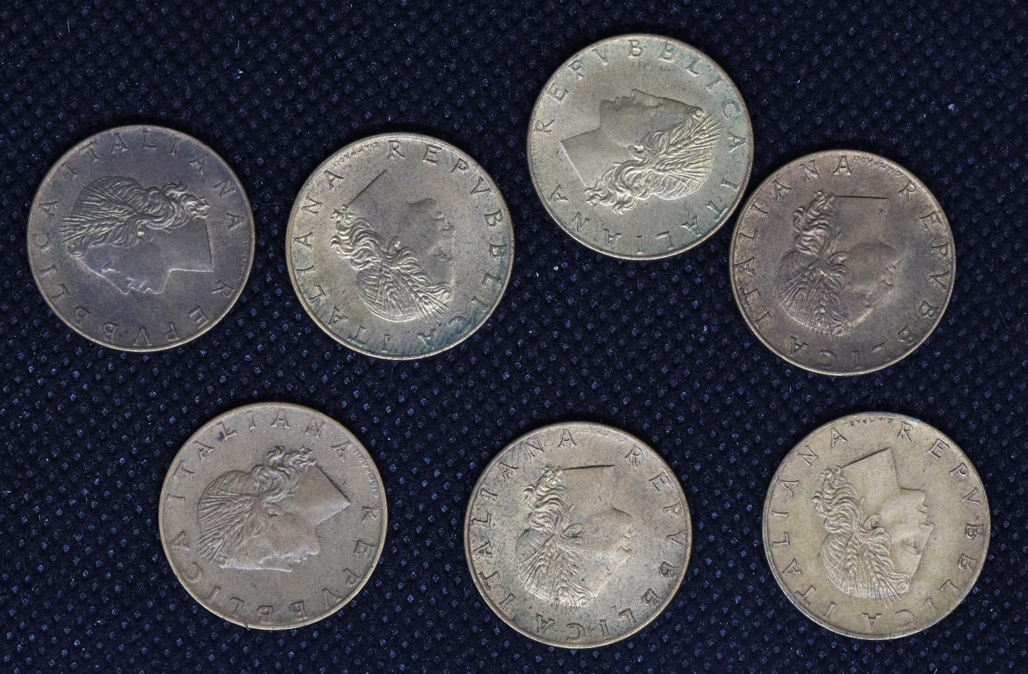 LOTTO DI 7 MONETE REPUBBLICA ITALIANA da 20 lire 1958
