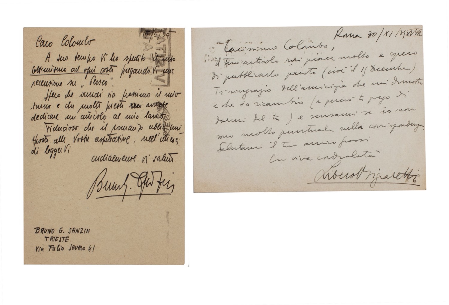 Lot 7 | Bigiaretti, Libero - Sanzin, Bruno Giordano - Cartoline postali autografe firmate