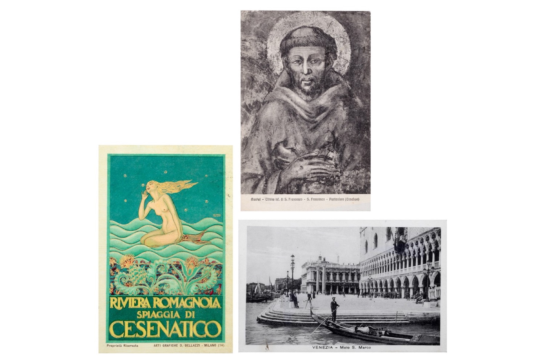2 cartoline postali a.f. di Palazzeschi a Astorre Fabbretti, Assisi 4.X.1926 e Venezia, 22 IX 1928; una cartolina postale a.f. sempre a Fabbretti, Cesenatico 10 III 1926.