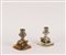 COPPIA DI CANDELIERI A TARTARUGA IN ARGENTO manifattura italiana poggianti su basi sagomate h. 10,5 cm.