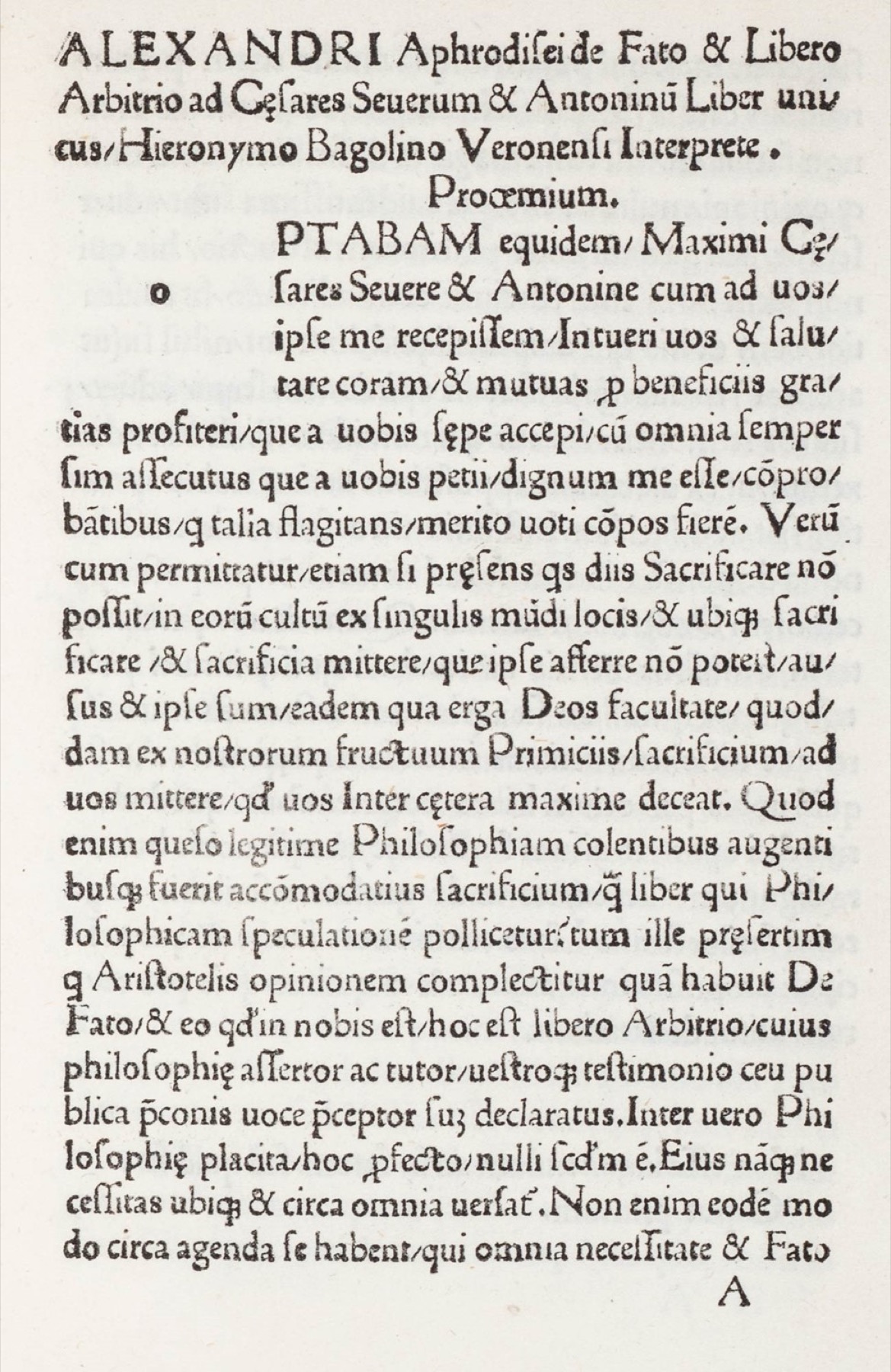 Alessandro di Afrodisia - Bagolino, Girolamo - Hieronymi Bagolini Veronensis In interpretationem Alexandri Aphrodisei De fato praefatio