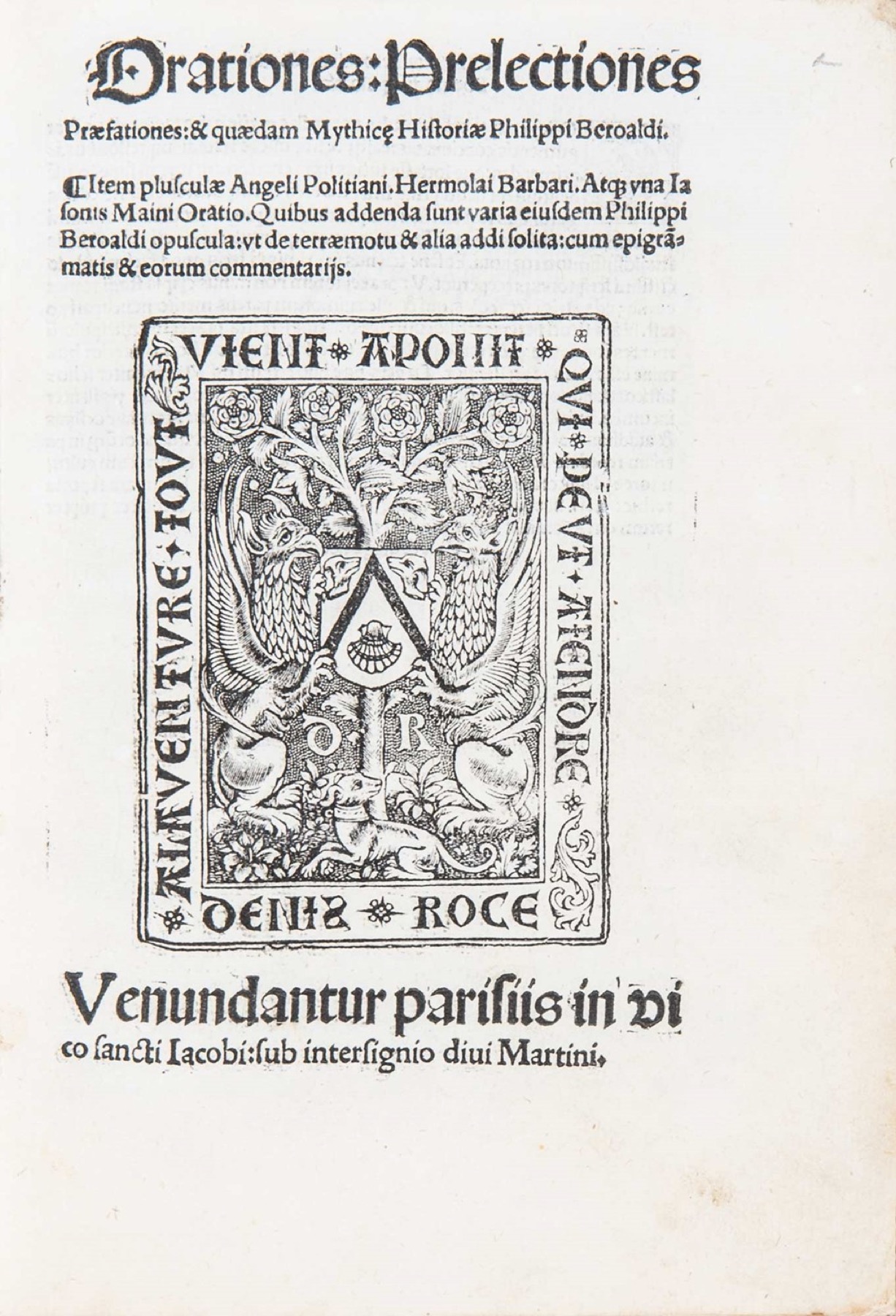 Lot 64 | Beroaldo, Filippo - Orationes prelectiones et prefationes et quaedam mithice historiae Philippi Beroaldi. Item pluscule Angeli Politiani [...]