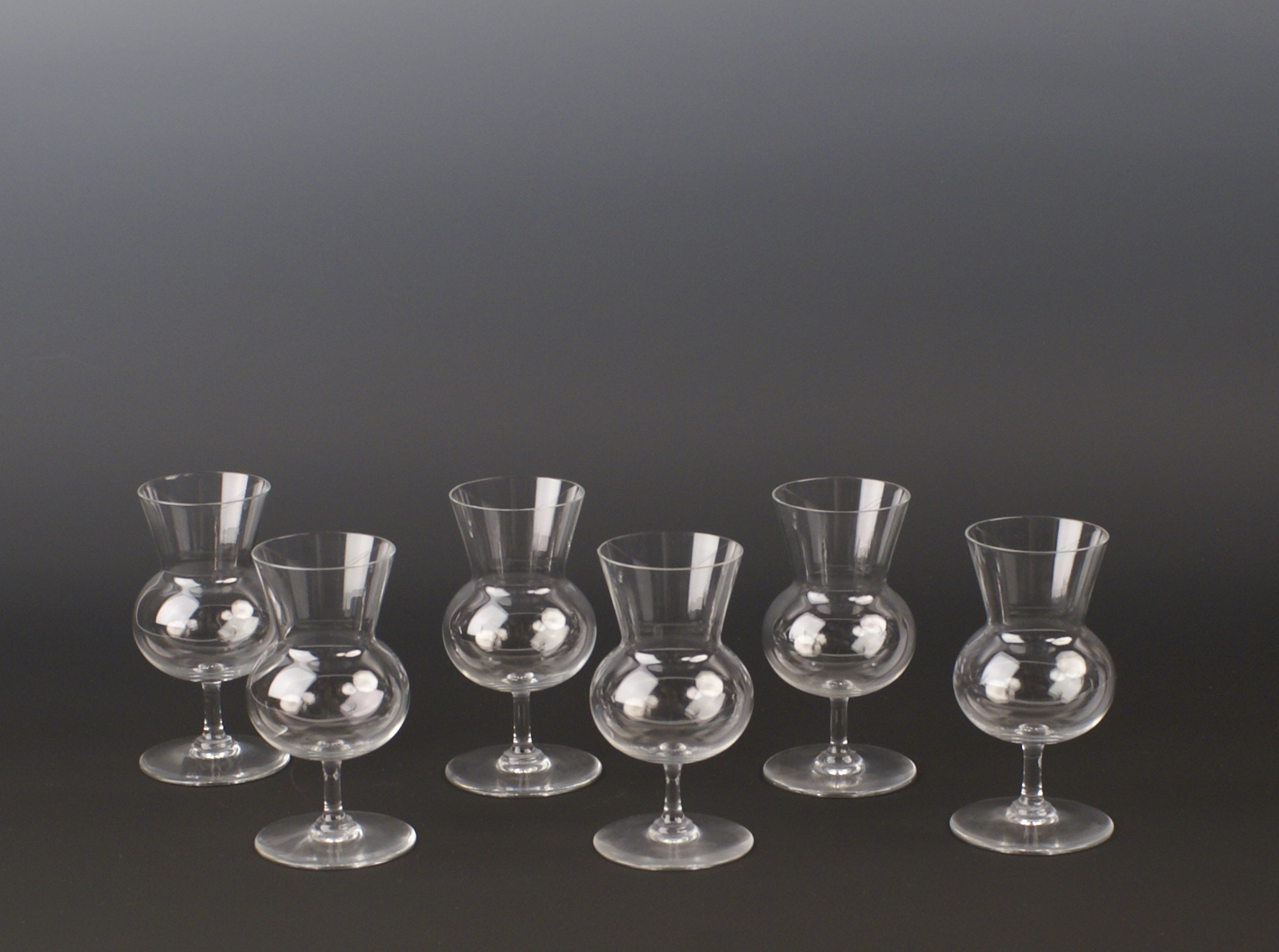 SEI BICCHIERI DA GRAPPA BACCARAT Francia in cristallo firmati sotto la base h. 12 cm.