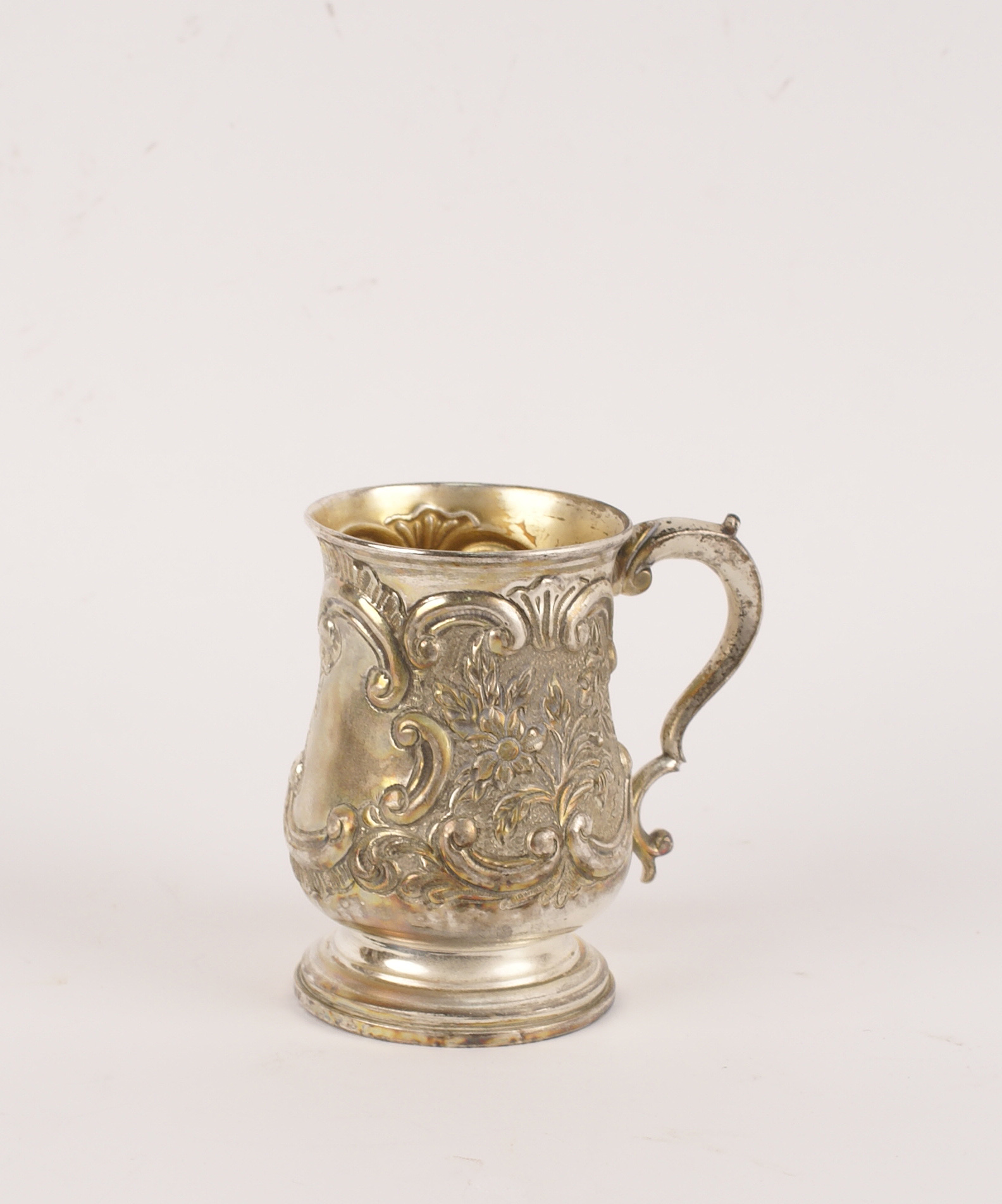 BOCCALE IN ARGENTO SBALZATO ED INCISO manifattura italiana interno in argento dorato, h. cm 11 237 gr.