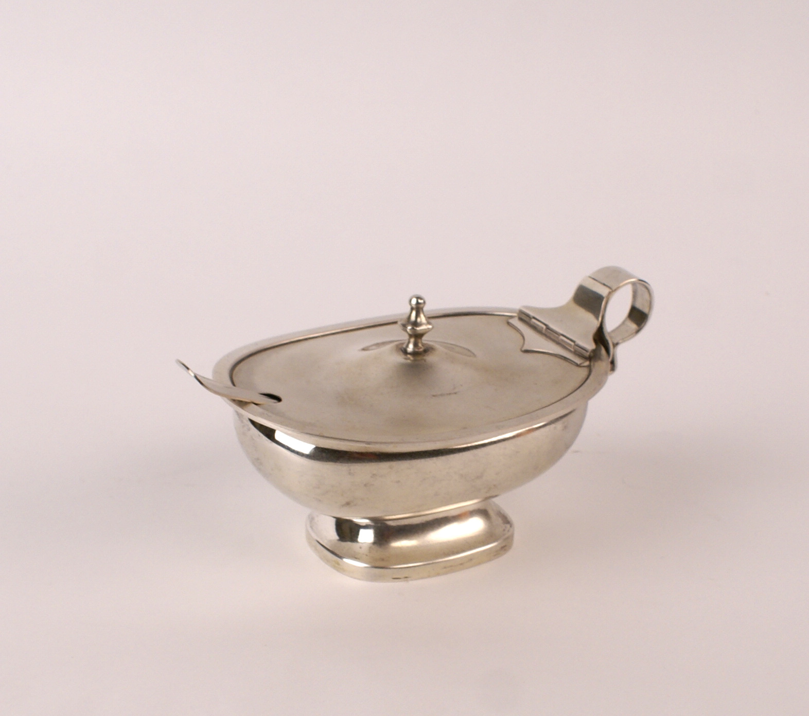 FORMAGGIERA IN ARGENTO manifattura italiana a corpo liscio completa di cucchiaio, cm.9x17x11 300 gr.