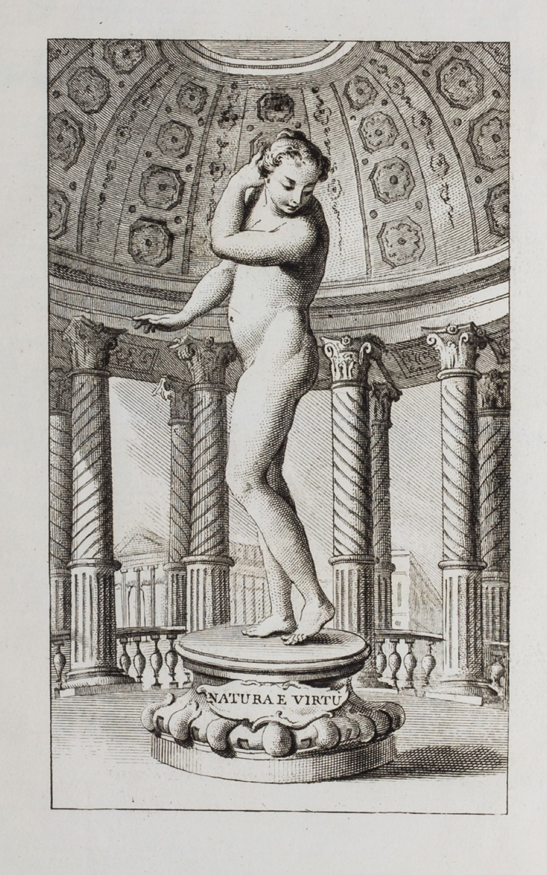 Venezia, Antonio Graziosi, 1767. In 8°. Antiporta allegorica incisa in rame, vignetta calcografica al frontespizio, legatura coeva in mezzo marocchino con angoli, dorso liscio impresso in oro, palmette impresse sugli angoli. Ex libris cartaceo al contropiatto: Conte Sperello Aureli (Castel del Piano, Perugia).