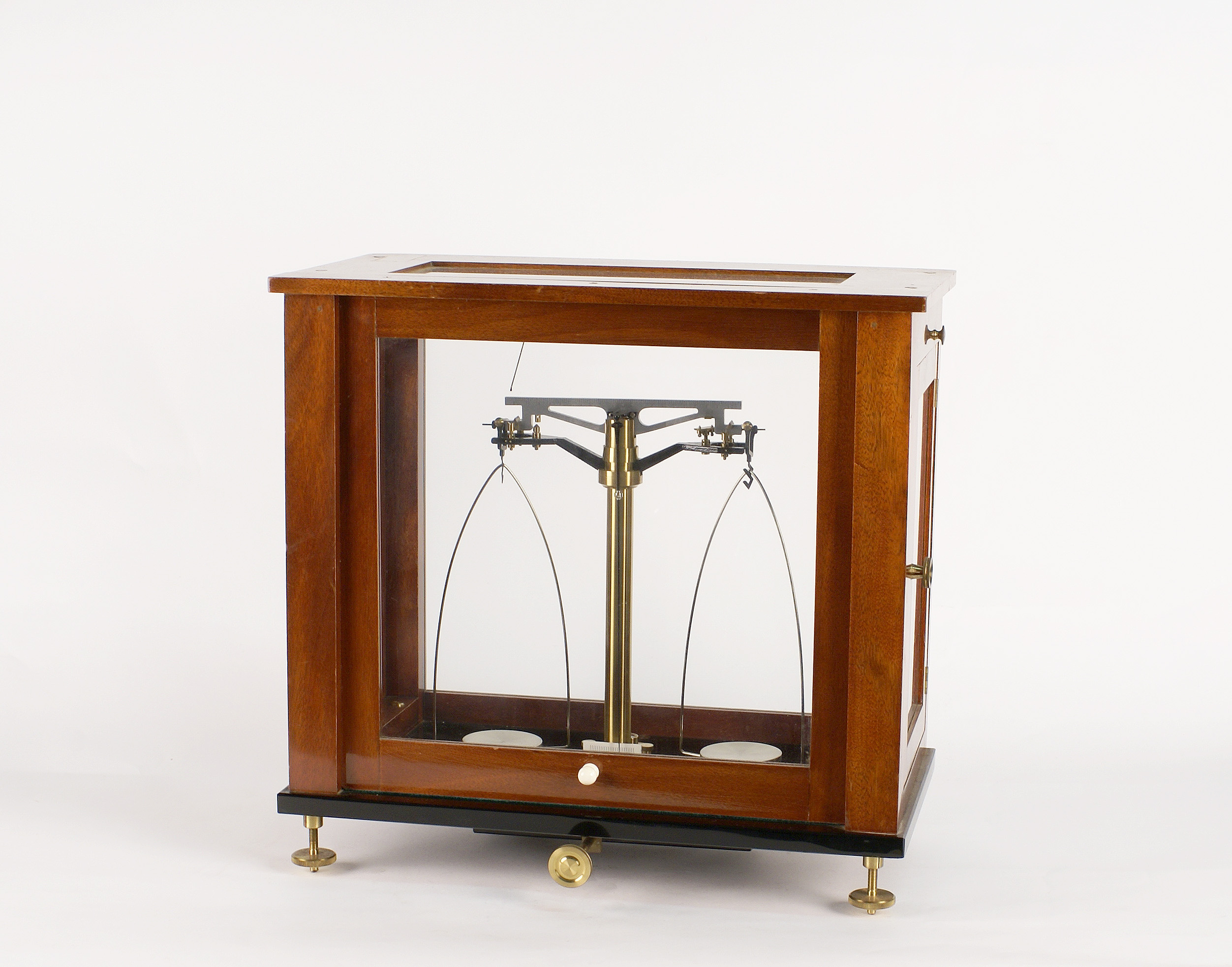 BILANCIA DI PRECISIONE "BECKER'S SONS" Olanda vecchia manifattura in mogano e legno ebanizzato con vetri 41x43x23 cm.