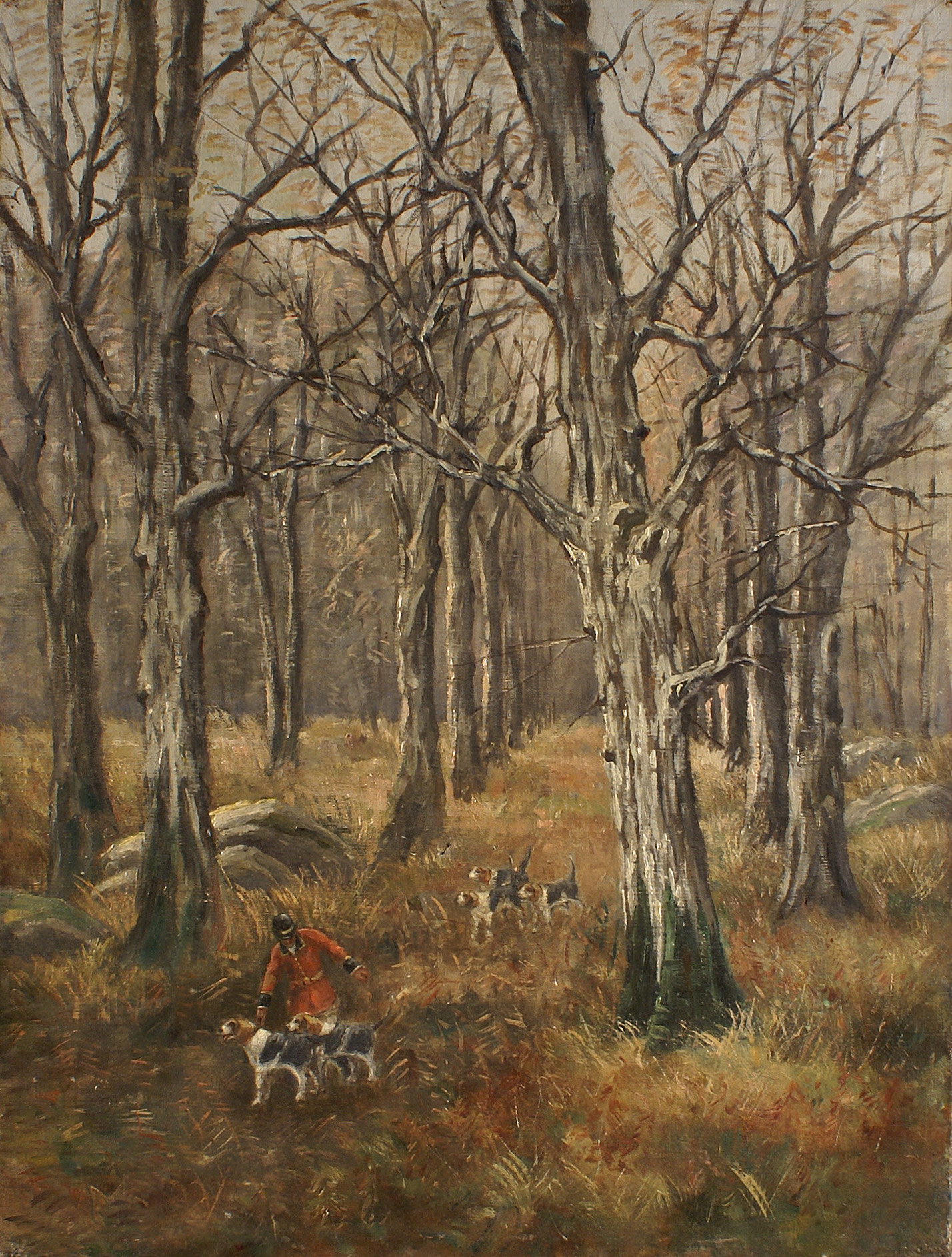 SCUOLA INGLESE fine del XIX Sec. Scena di caccia, olio su tela (difetti) 65x49 cm.