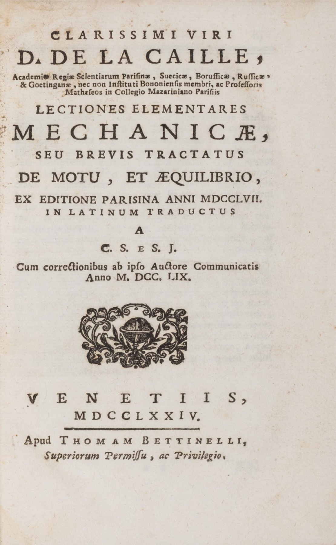 Scienze / La Caille, Nicolas Louis de - Lectiones elementares mechanicae, seu Brevis tractatus de motu, et aequilibrio
