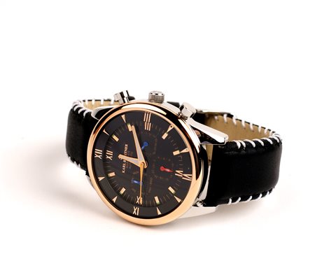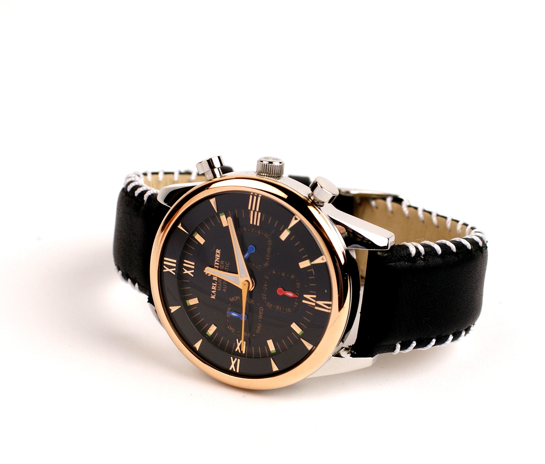 OROLOGIO DA POLSO SCHELETRICO KARL BREITNER cassa circolare in acciaio 33mm, movimento meccanico a carica manuale, cinturino in pelle