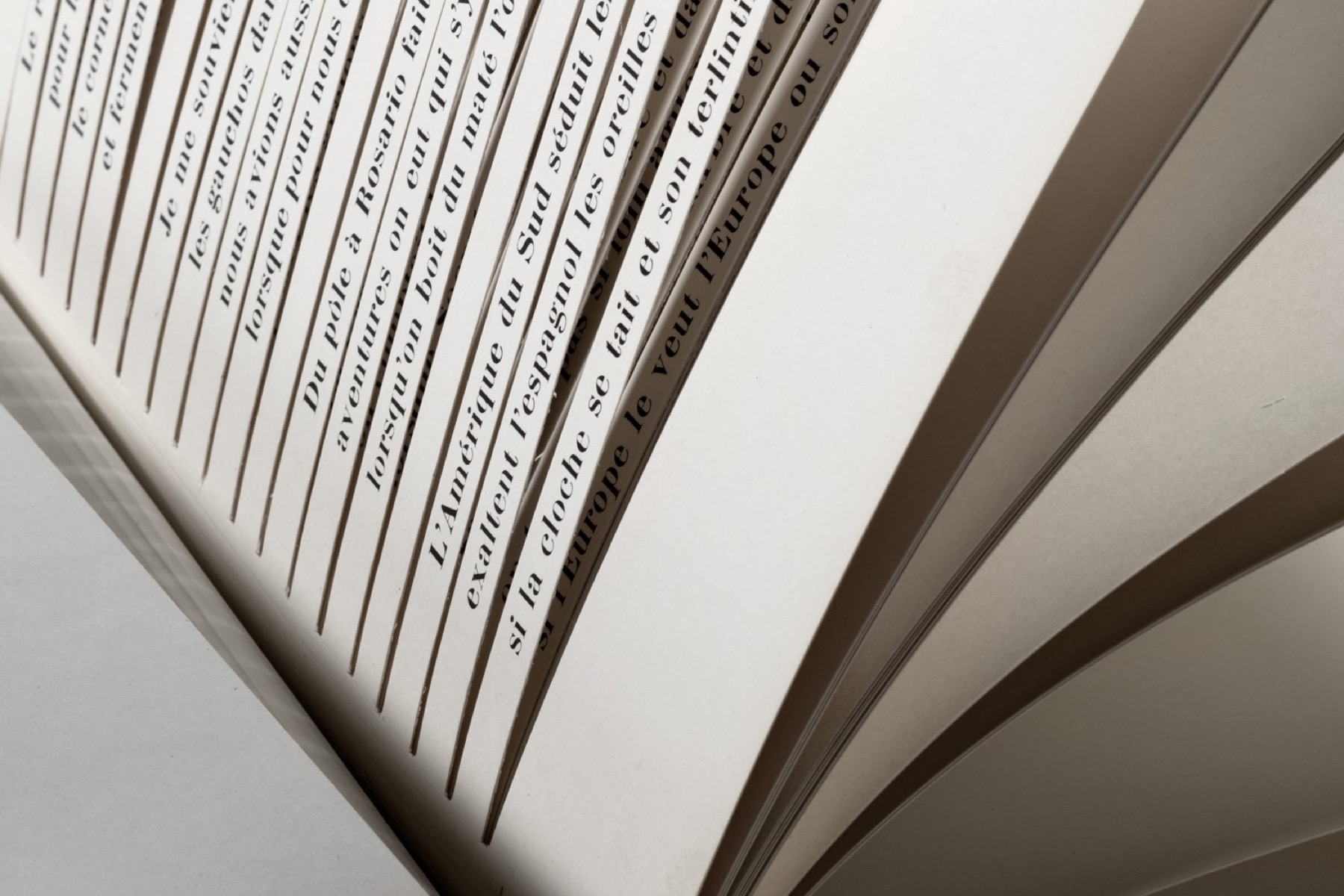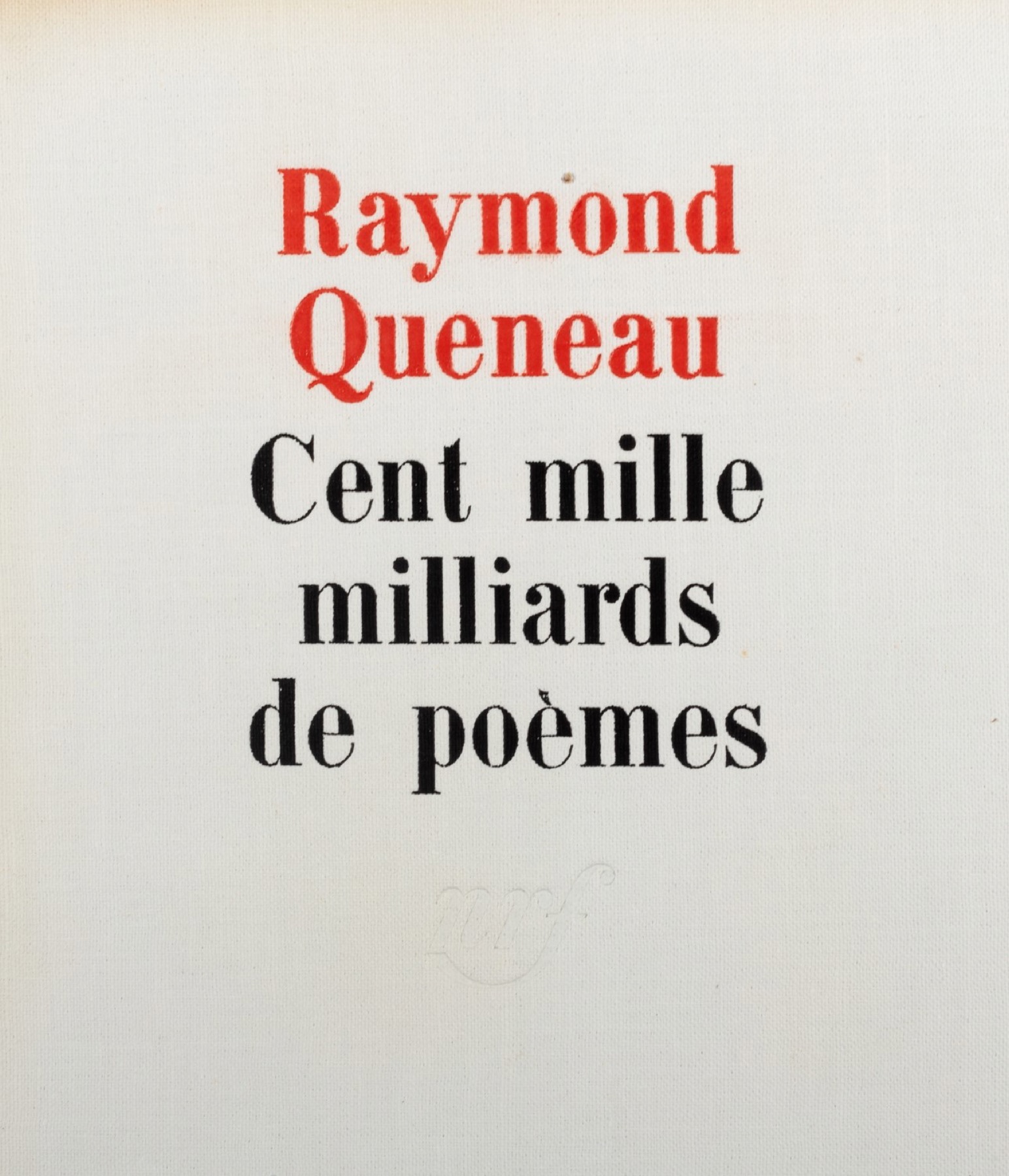 Prima edizione di questo sorprendente esempio di "letteratura combinatoria", il sistema di testo a strisce montato su linguette che consente un numero considerevole di permutazioni. Come scrive Queneau nella sua prefazione, "contando 45 secondi per leggere un sonetto e 15 secondi per cambiare le persiane, a 8 ore al giorno, 200 giorni all'anno, abbiamo più di un milione di secoli di lettura, e leggendo tutto il giorno 365 giorni all'anno, per: 190258751 anni, (senza tener conto degli anni bisestili) ". Edizione a tiratura limitata di 2750 copie, la nostra è la 447.