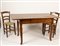 TAVOLO E QUATTRO SEDIE vecchia manifattura in pioppo, piano rettangolare con...