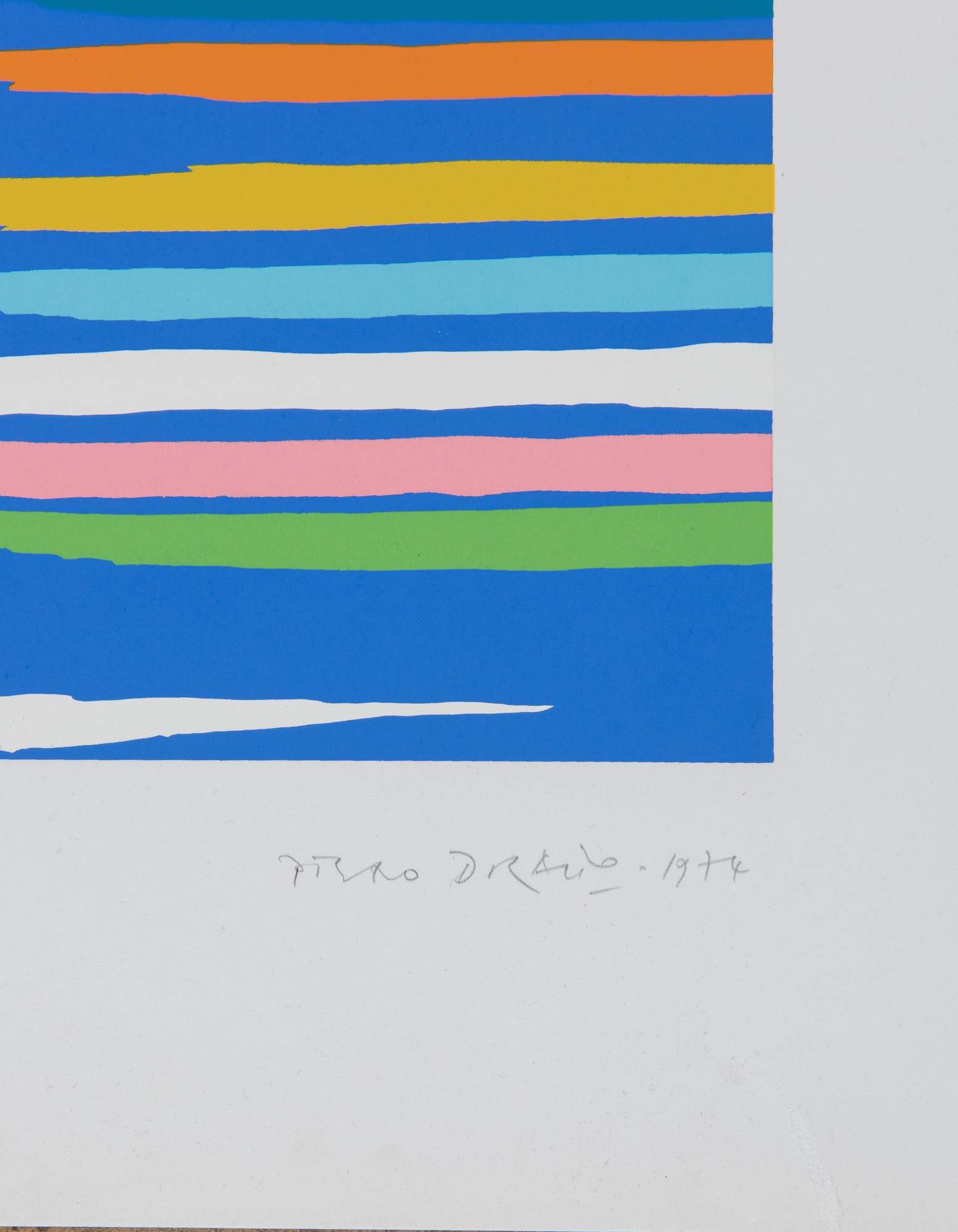 PIERO DORAZIO (Roma 1927 - Perugia 2005). “Senza titolo”, 1974. Litografia a colori su carta. Cm 97,7x59,8. Opera firmata e datata in basso a destra Piero Dorazio 1974. Reca numero di tiratura in basso a sinistra 7/50. Reca al retro timbro Grafisier - Serigrafia - Artistica - Roma. Bollo di Autentica.