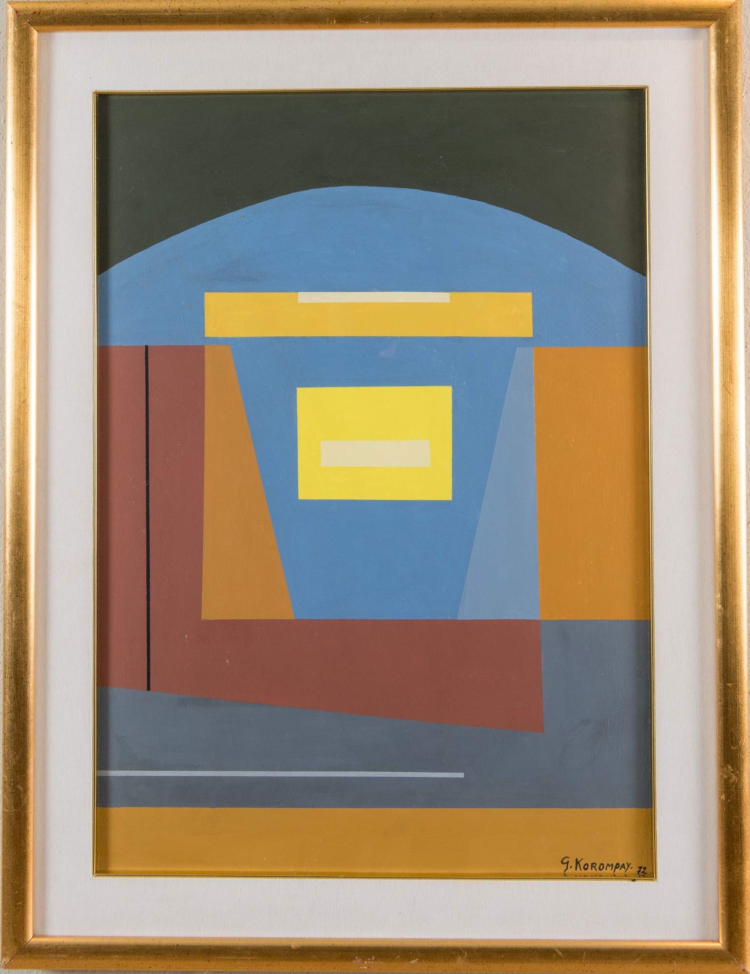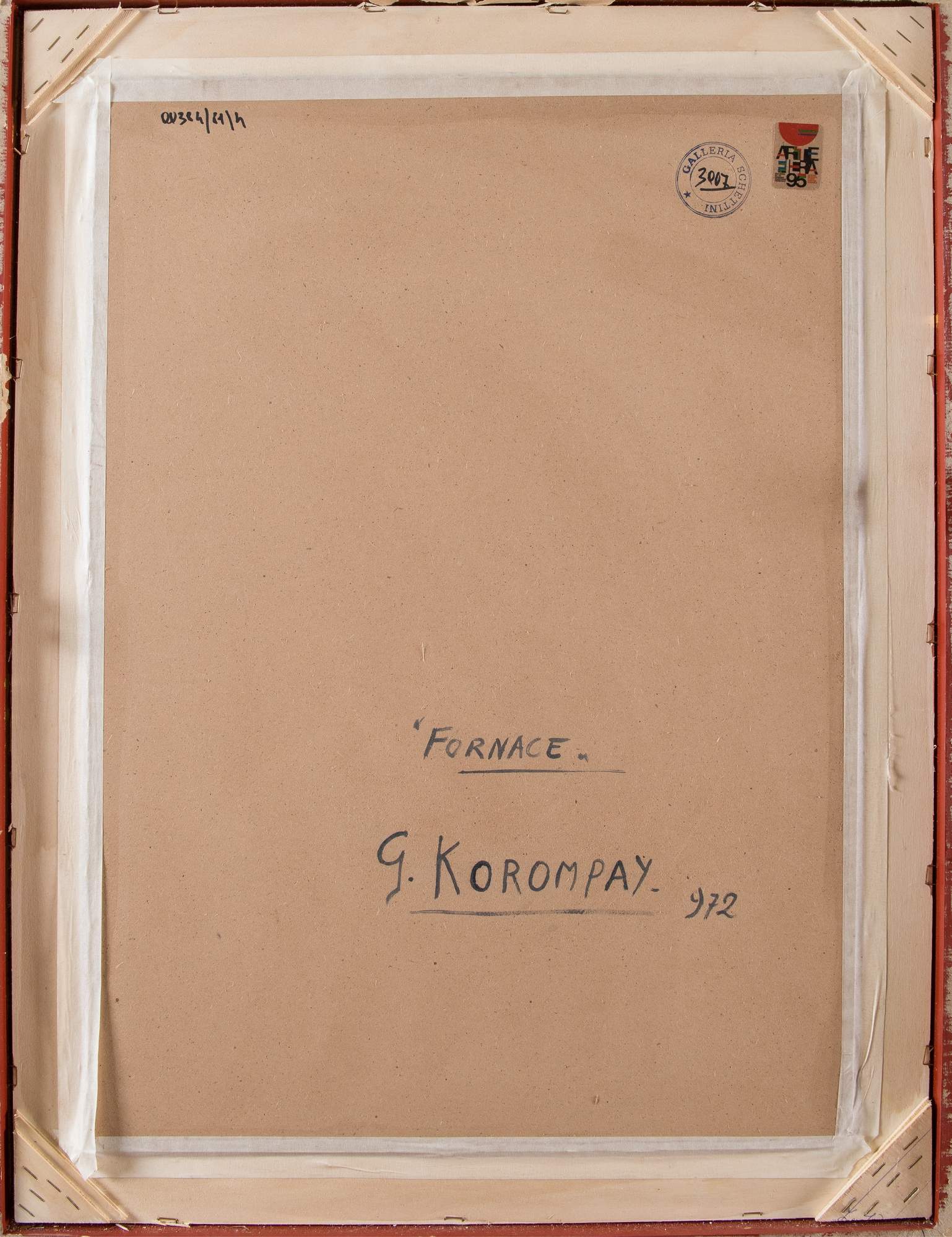 GIOVANNI KOROMPAY (Venezia 1904 - Rovereto 1988) "Fornace", 1972. Olio su tavola. Cm 70x50. Opera firmata e datata in basso a destra G. Korompay 72. Opera firmata datata e intitolata al retro "Fornace" G. Korompay 972. Al retro reca etichetta Arte fiera '95 e timbro Galleria Schettini. Opera accompagnata da autentica su fotografia dell'artista.