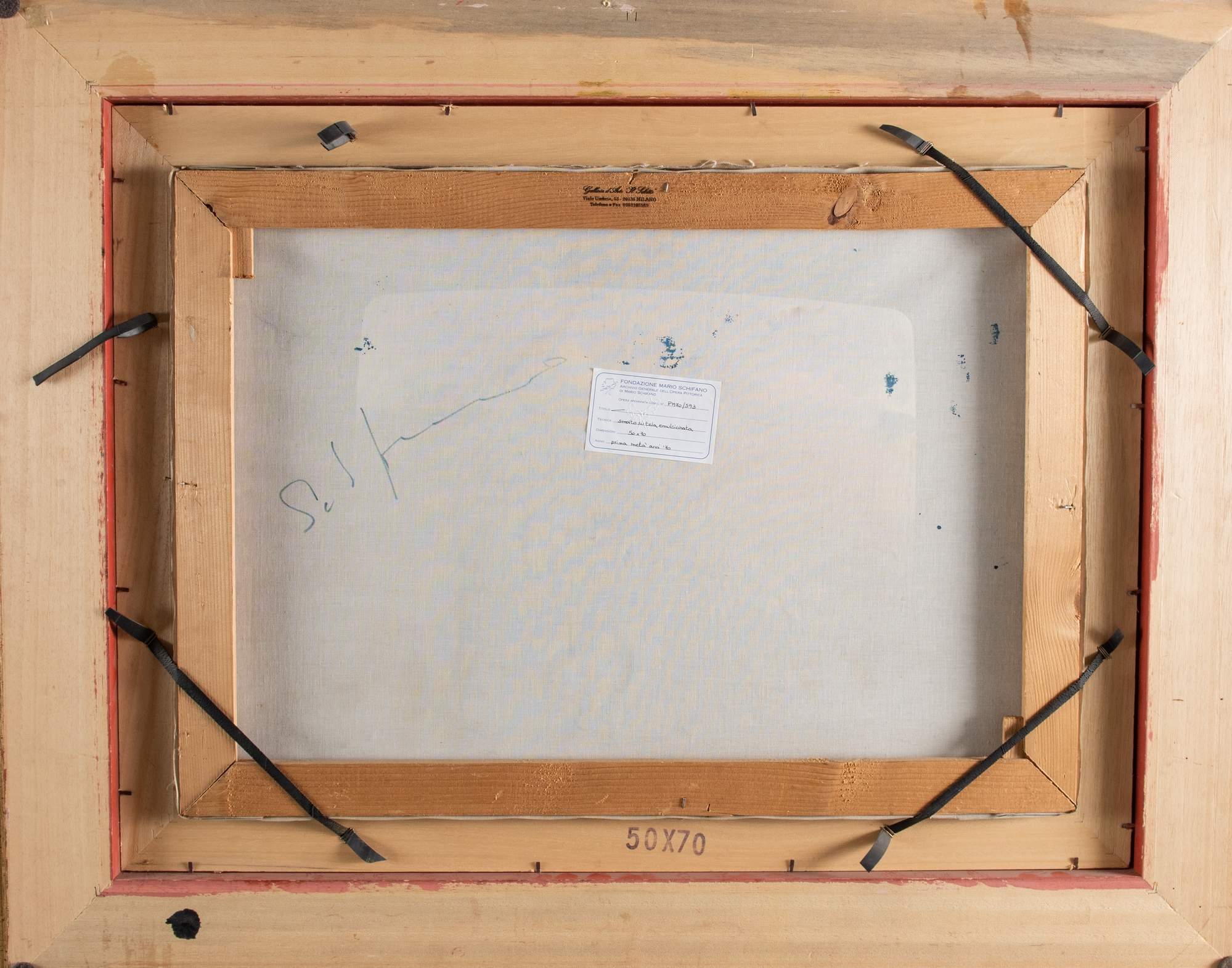MARIO SCHIFANO (Homs 1934 - Roma 1998) "Televisore", prima metà degli anni '70. Smalto su tela emulsionata. Cm 50x70. Opera firmata al retro Schifano. Al retro reca etichetta di archiviazione della fondazione Mario Schifano. Opera archiviata con il numero PM70/593. Al retro reca timbro della Galleria d'Arte Il Salotto, Milano.