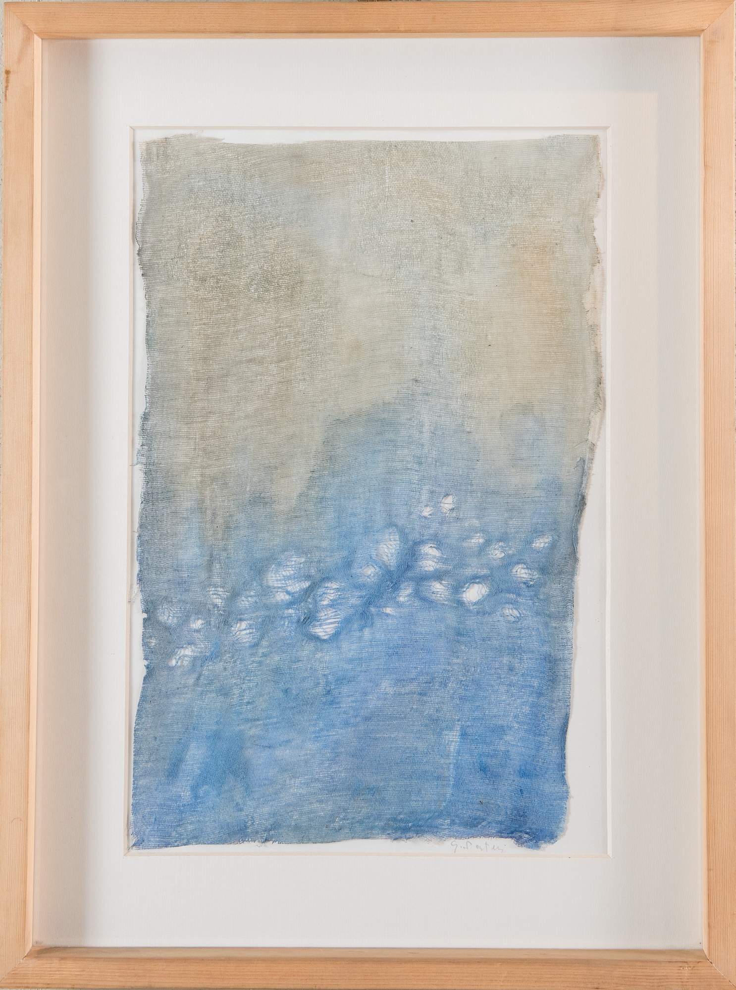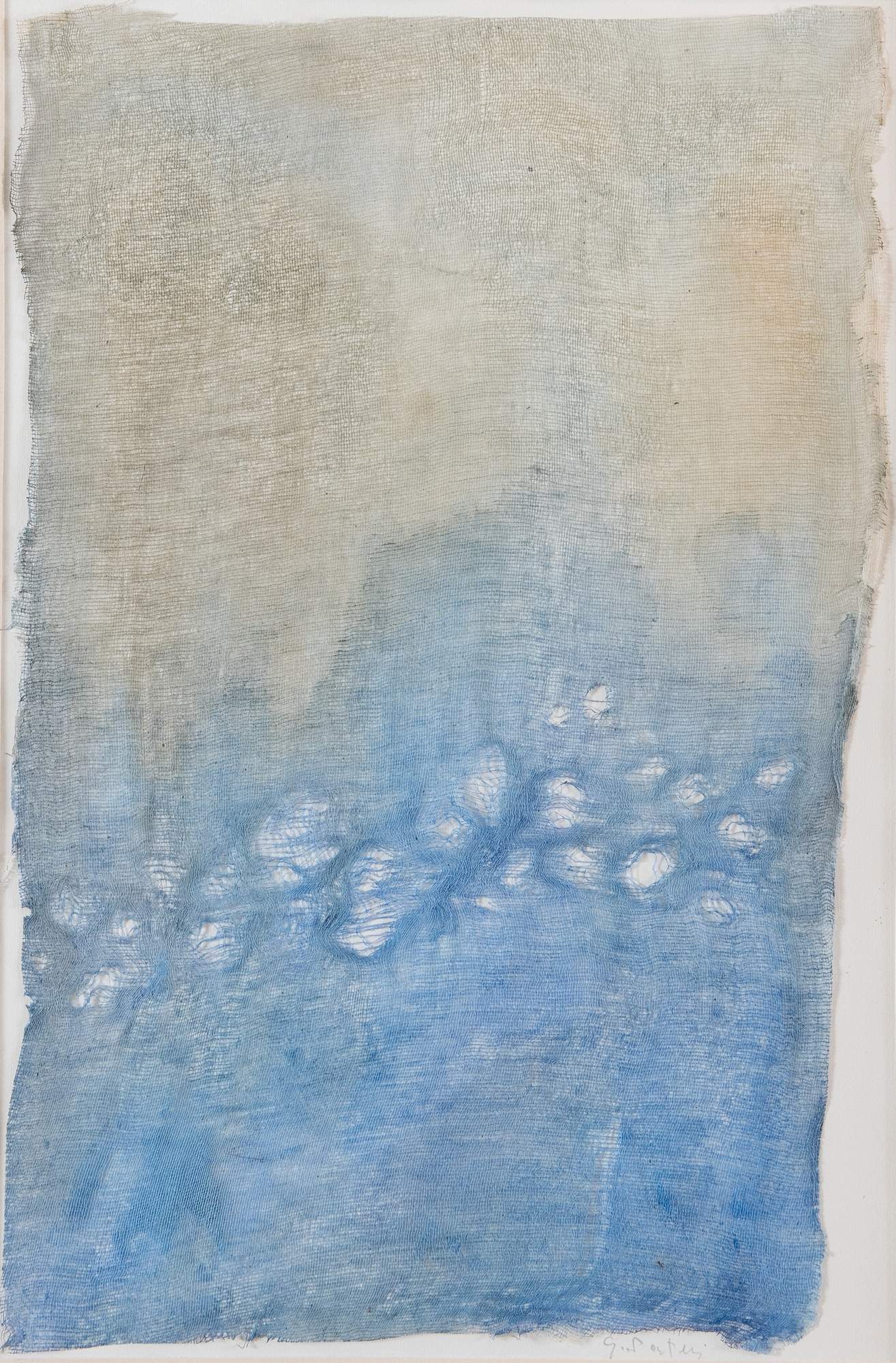 GERMANO SARTELLI (Imola 1925 - 2014) "Senza titolo". Tecnica mista su tela grezza applicata su carta. Cm 44x29,5. Opera firmata in basso a destra G. Sartelli.