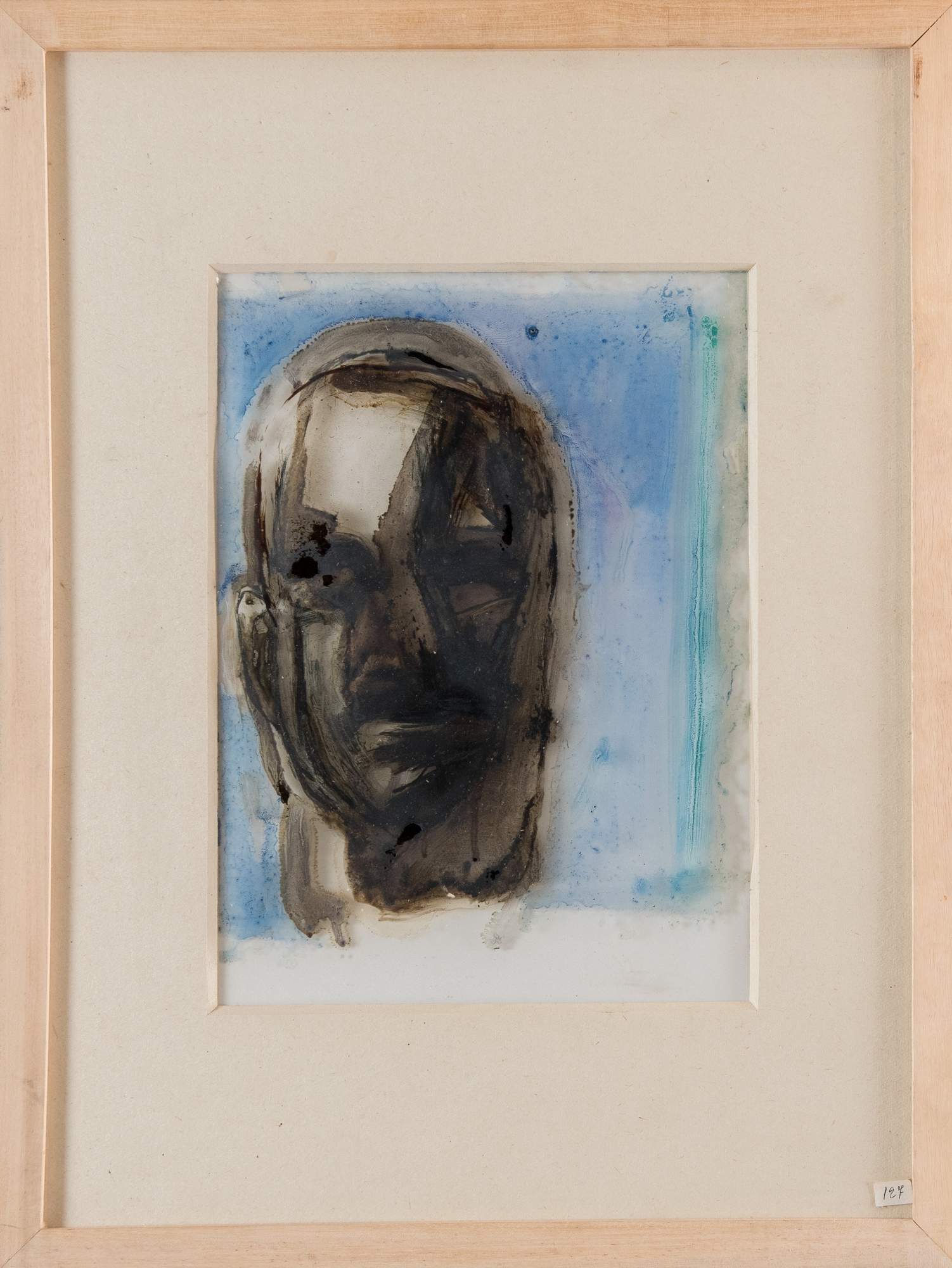 PIERO MANAI (Bologna 1951 - 1988) "Testa", 1984. Tecnica mista su acetato. Cm 30x21,5. Al retro opera firmata, datata e intitolata Piero Manai 1984 Testa.