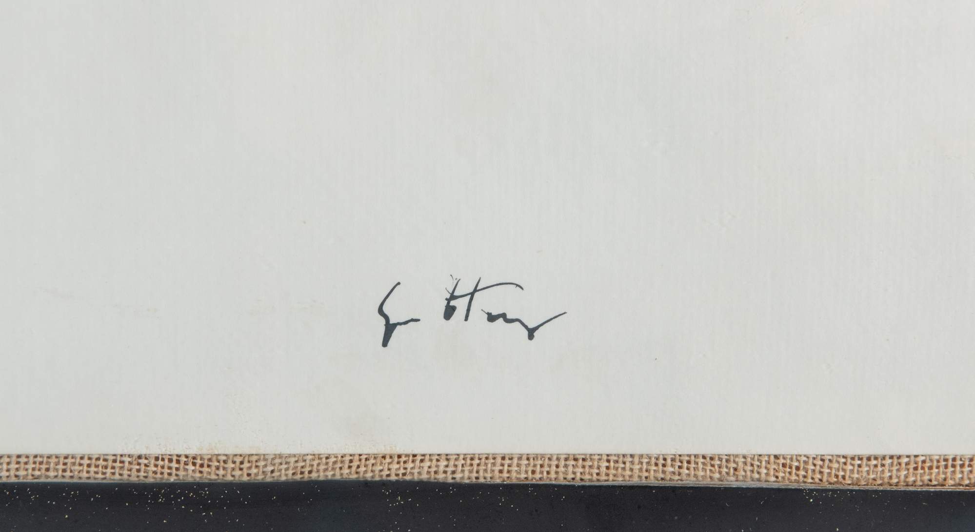 RENATO GUTTUSO (Bagheria 1911 - Roma 1987) "Garzone d'osteria". Tecnica mista su carta applicata su tela. Cm 52x37. Opera firmata in basso a destra Guttuso. Opera accompagnata da autentica su fotografia del maestro con timbro della Galleria d'Arte La Scaletta.