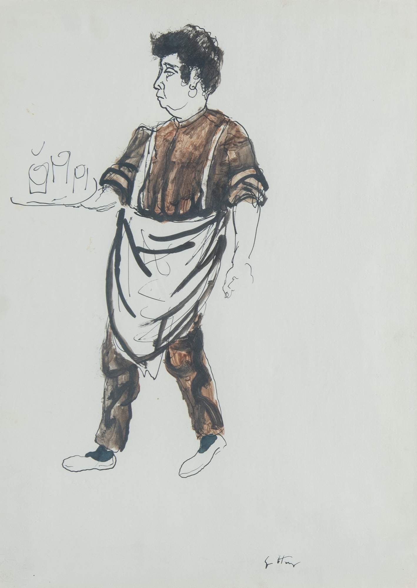 RENATO GUTTUSO (Bagheria 1911 - Roma 1987) "Garzone d'osteria". Tecnica mista...