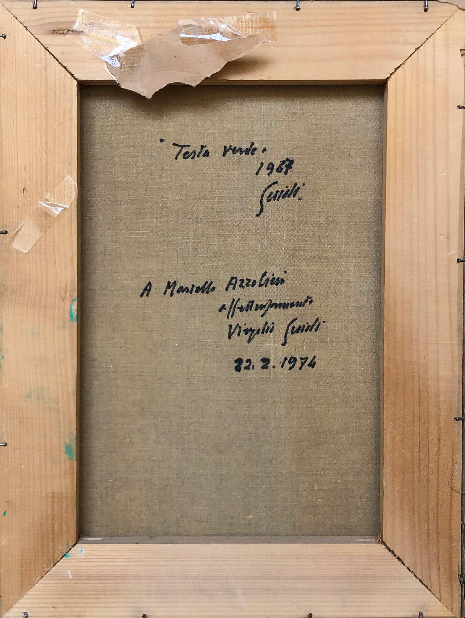 VIRGILIO GUIDI (Roma 1891 - Venezia 1984) "Testa verde", 1967. Olio su tela. Cm 40x30. Opera firmata in basso a destra Guidi. Opera intitolata, datata e firmata al retro Testa verde 1967 Guidi. Al retro reca dedica in data 22 Febbraio 1974. Opera donata dall'artista all'attuale proprietà. Provenienza: importante collezione privata, Bologna.