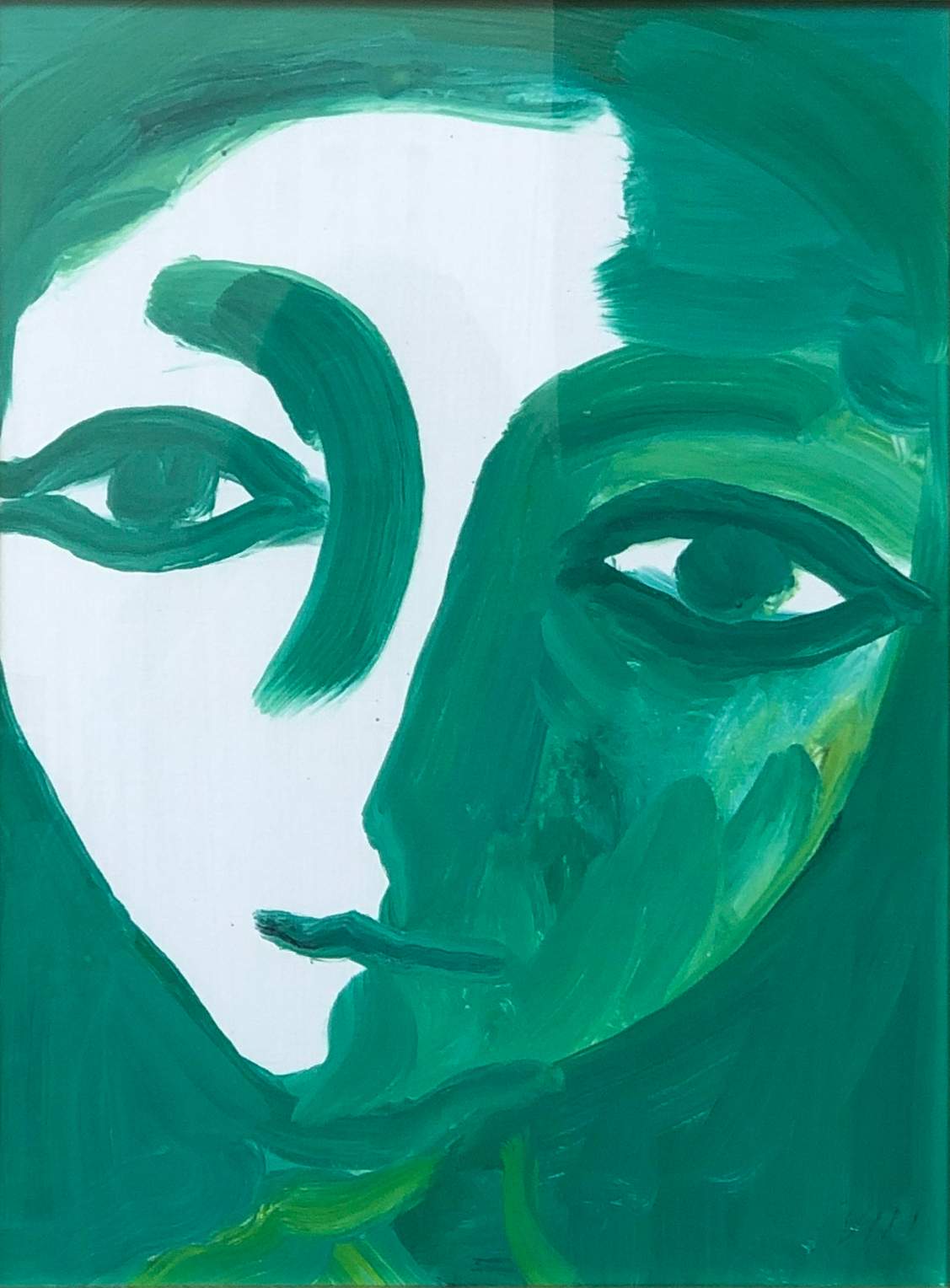 VIRGILIO GUIDI (Roma 1891 - Venezia 1984) "Testa verde", 1967. Olio su tela....
