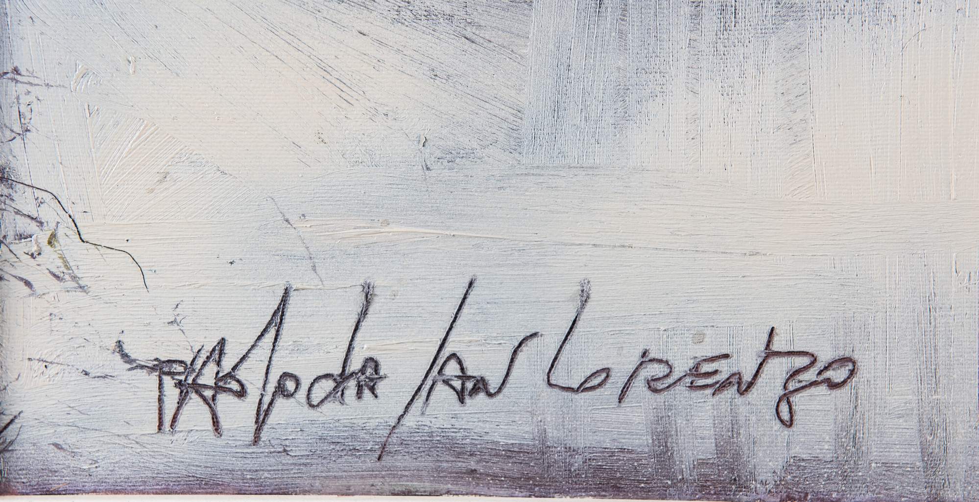 PAOLO DA SAN LORENZO (San Lorenzo in Campo 1935) "Mondo del 2088", 1988. Olio su tela. Cm 100x120. Opera firmata in basso a sinistra Paolo da San Lorenzo. Al retro reca etichetta di autentica a firma dell'artista.